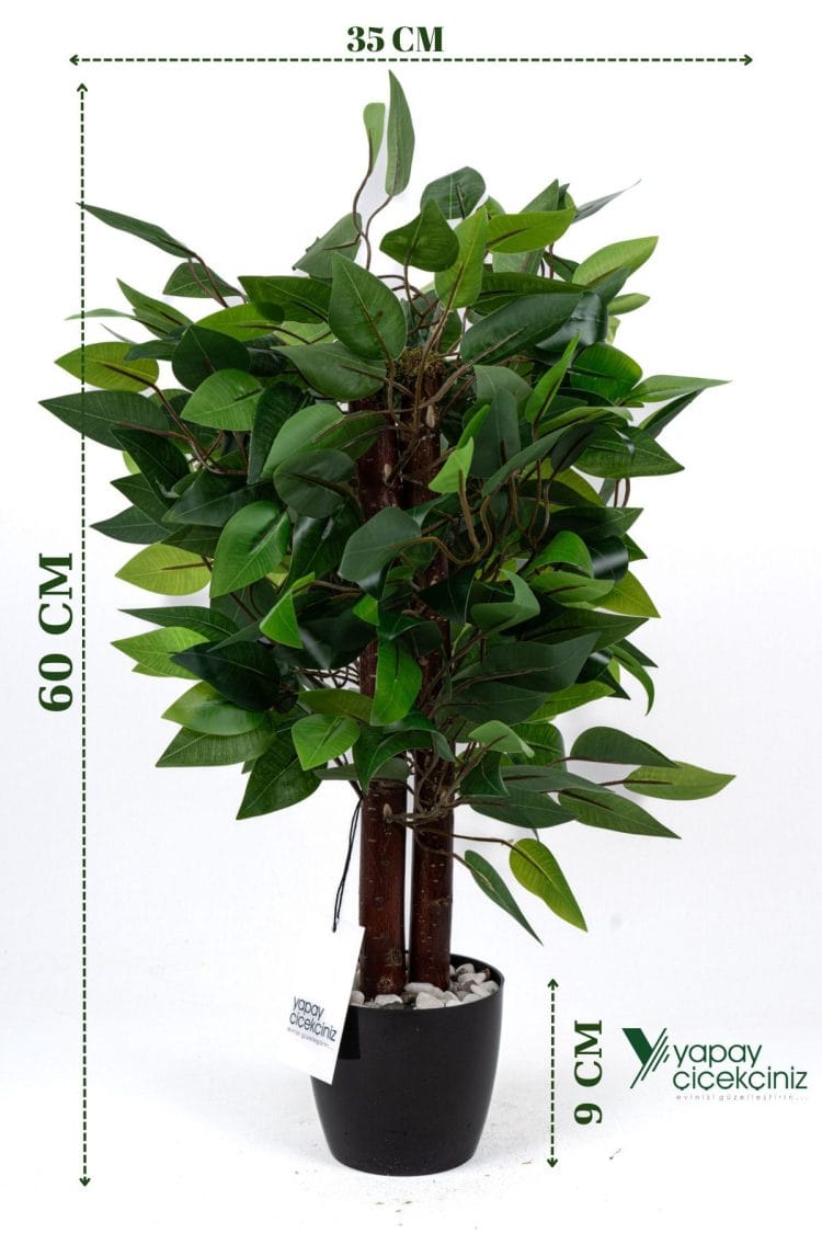 Taş Detaylı Siyah Saksıda 60 Cm Yoğun Yapraklı Yapay Benjamin Ağacı