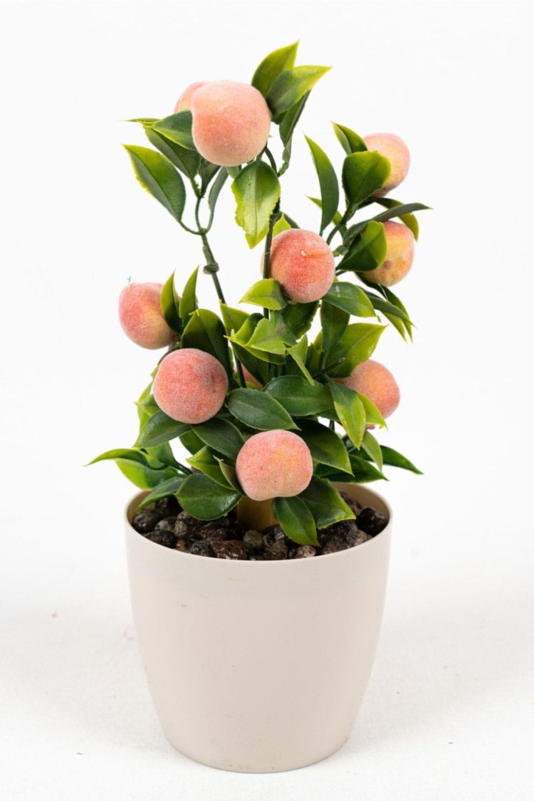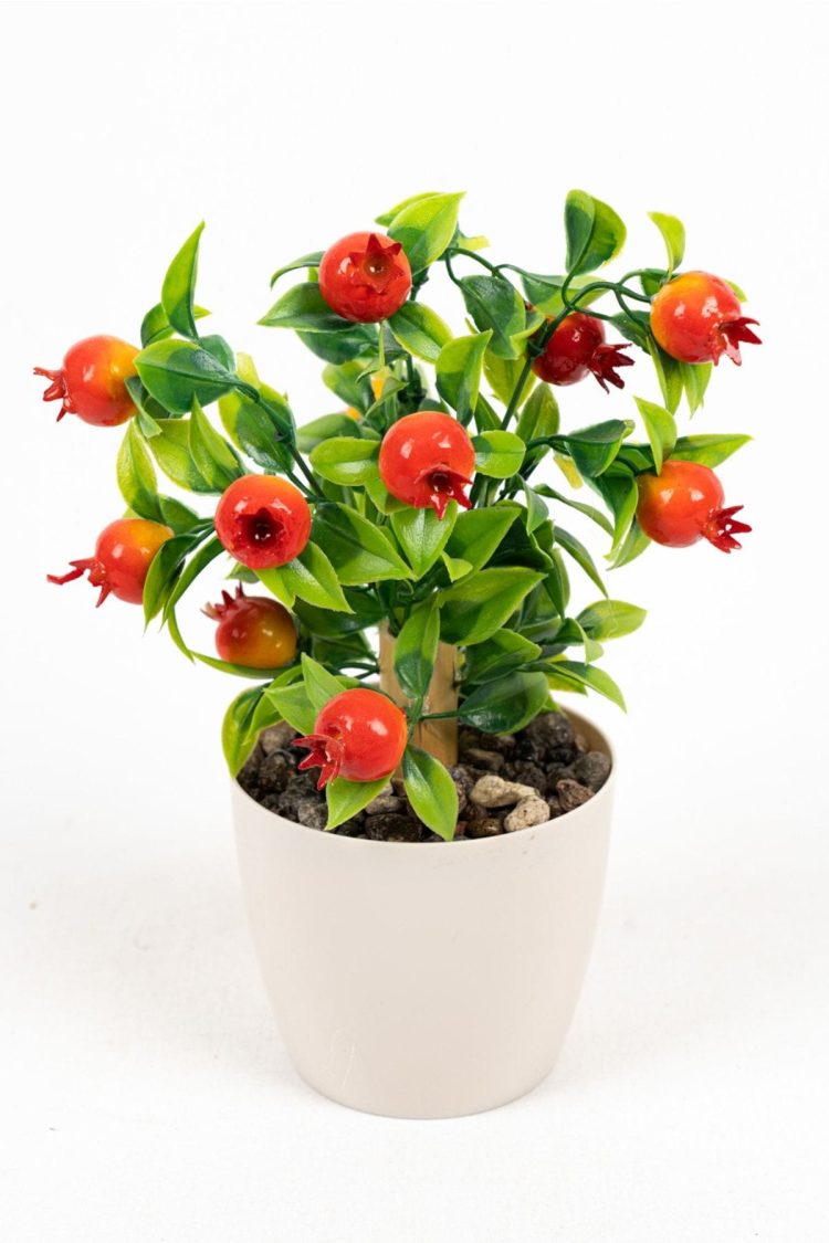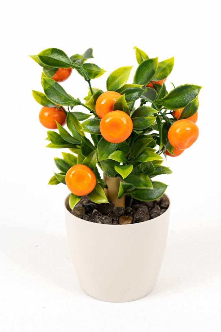 Beyaz Plastik Saksıda Bambu Gövdeli Yapay Mandalina Ağacı 25 Cm