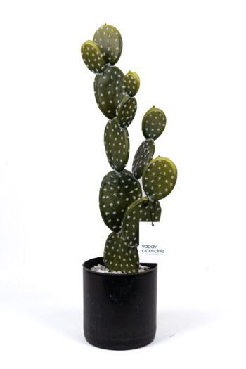 - Taş Kaplı Siyah Saksısında Yapay Texas Kaktüs