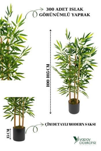 - Yapay Yoğun Yapraklı Dekoratif Bambu Ağacı 3 Gövde 150cm