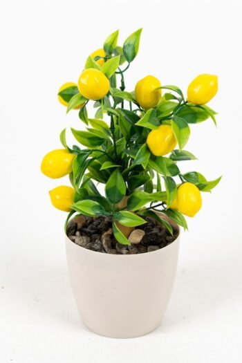 Düz Beyaz Beton Saksıda Yapay Limon Ağacı