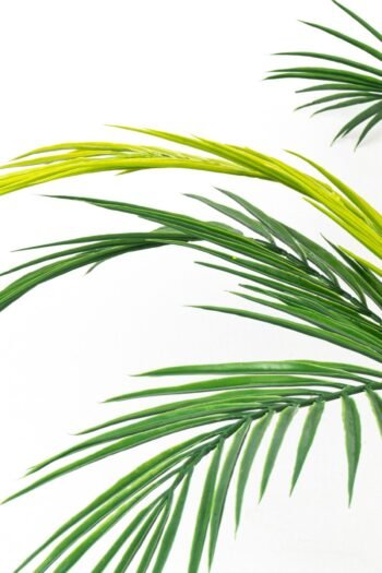 Beyaz Saksıda Çim Detaylı Büyük Yapraklı Yapay Areka Palmiye Ağacı 40 Cm