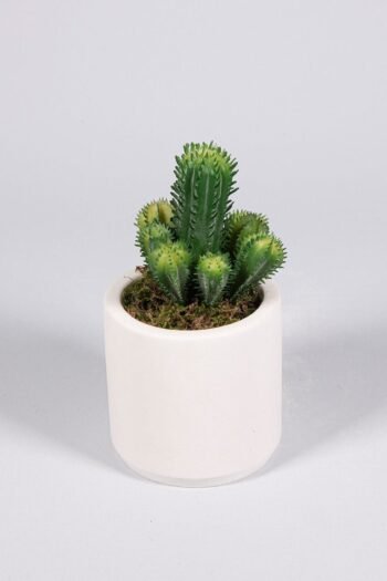 Beyaz Renkli Saksıda Yapay Kaktüs Sukulent