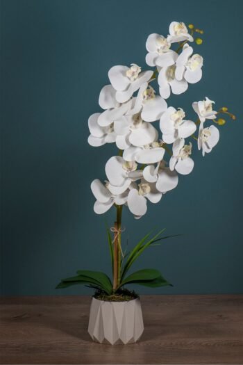 Seramik Saksıda 2 Dal Beyaz Islak Orkide