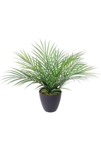 Beyaz Saksıda Çim Detaylı Büyük Yapraklı Yapay Areka Palmiye Ağacı 40 Cm