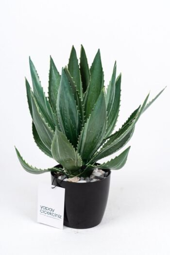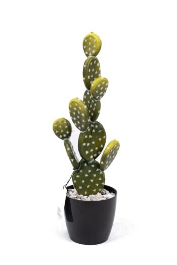 - Taş Kaplı Siyah Saksısında Yapay Texas Kaktüs
