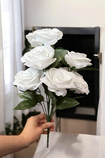 7 Dallı Dekoratif Yapay Beyaz Cipso Demeti Aranjman