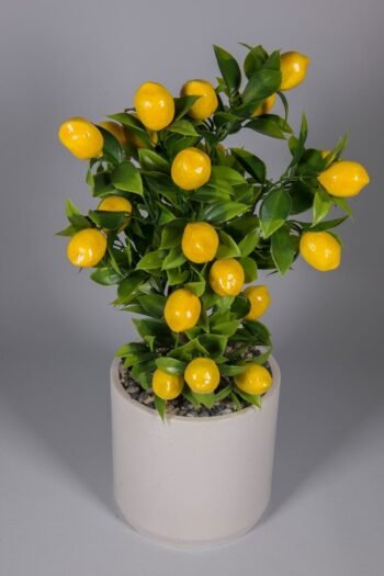 Düz Beyaz Beton Saksıda Yapay Limon Ağacı