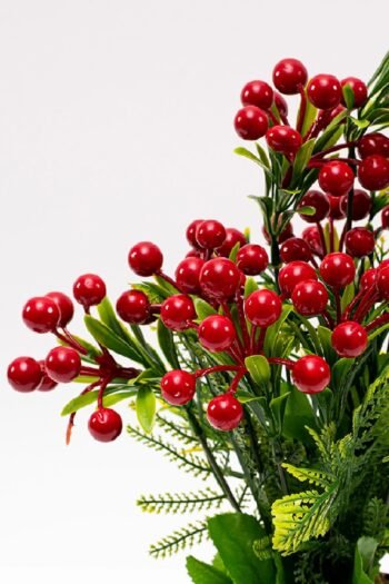 Çim Detaylı Beyaz Saksıda Kırmızı Renkli 100 cm Yapay Salon Bitkisi