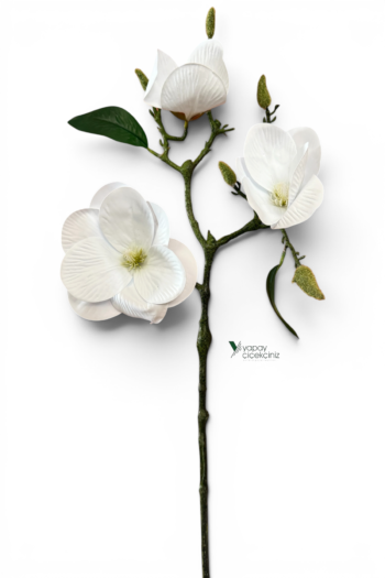 55 cm Islak Dokulu İri Yapraklı Yapay Manolya Dalı – Dekoratif Yapay Çiçek