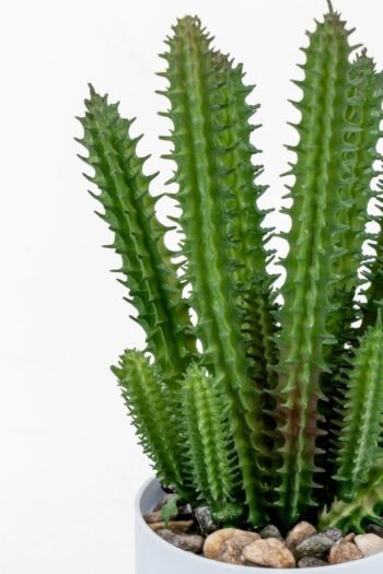 Beyaz Renkli Saksıda Yapay Kaktüs Sukulent