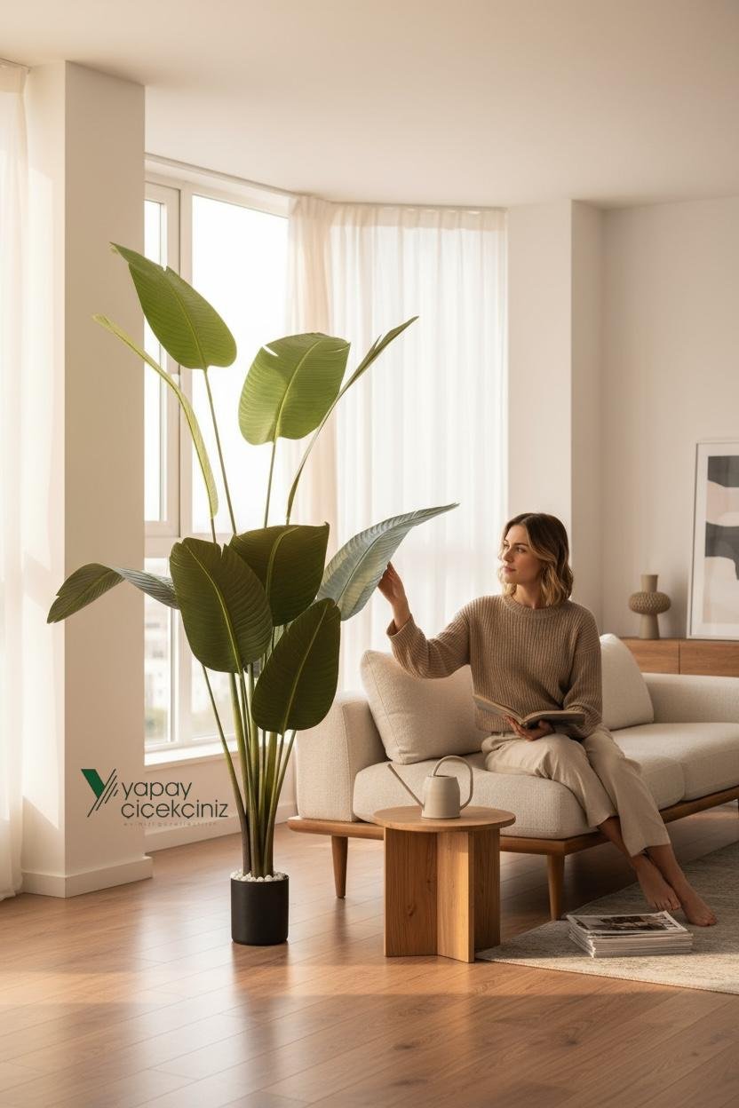 Dekorasyon İpucu: Minimalist, modern veya tropikal temalı dekorasyonlarla mükemmel uyum sağlar. Nötr renkli, büyük bir saksı ile kullanarak etkisini daha da artırabilirsiniz.