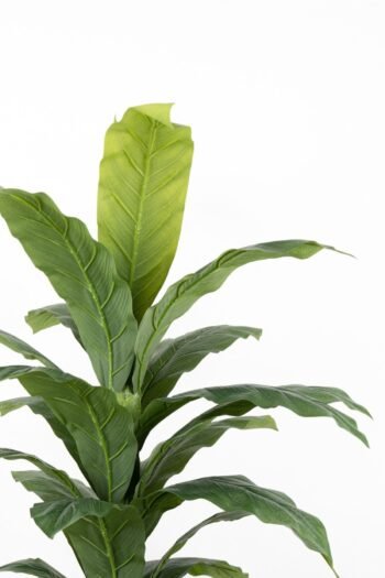 - Siyah Saksıda Çim Detaylı Büyük Yapraklı Yapay Difenbahya Ağacı 120 Cm