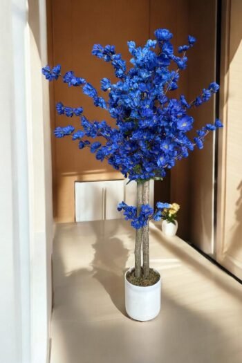 - Beyaz Saksıda 100 cm Yapay Lacivert Japon Bahardalı Ağacı