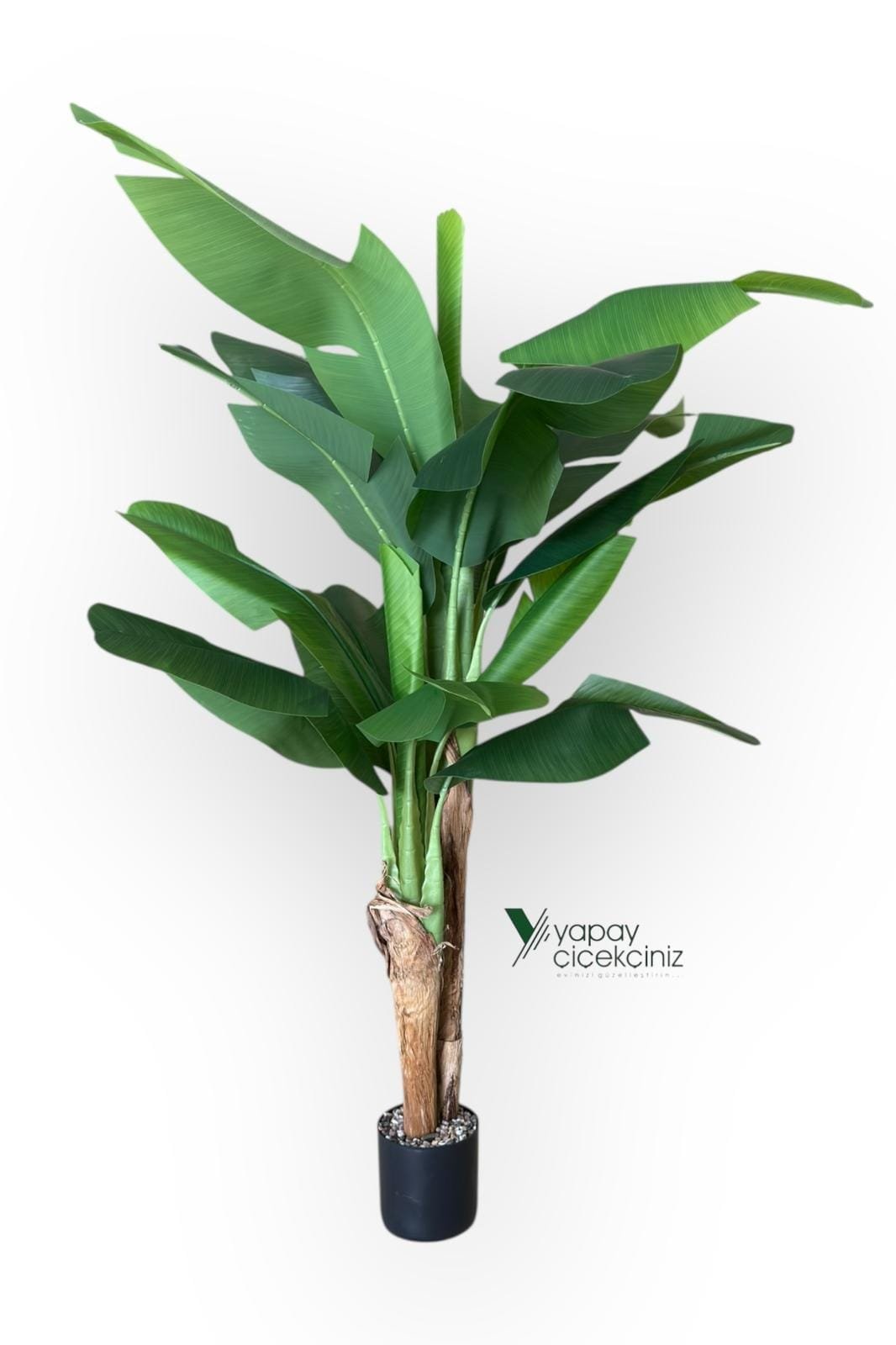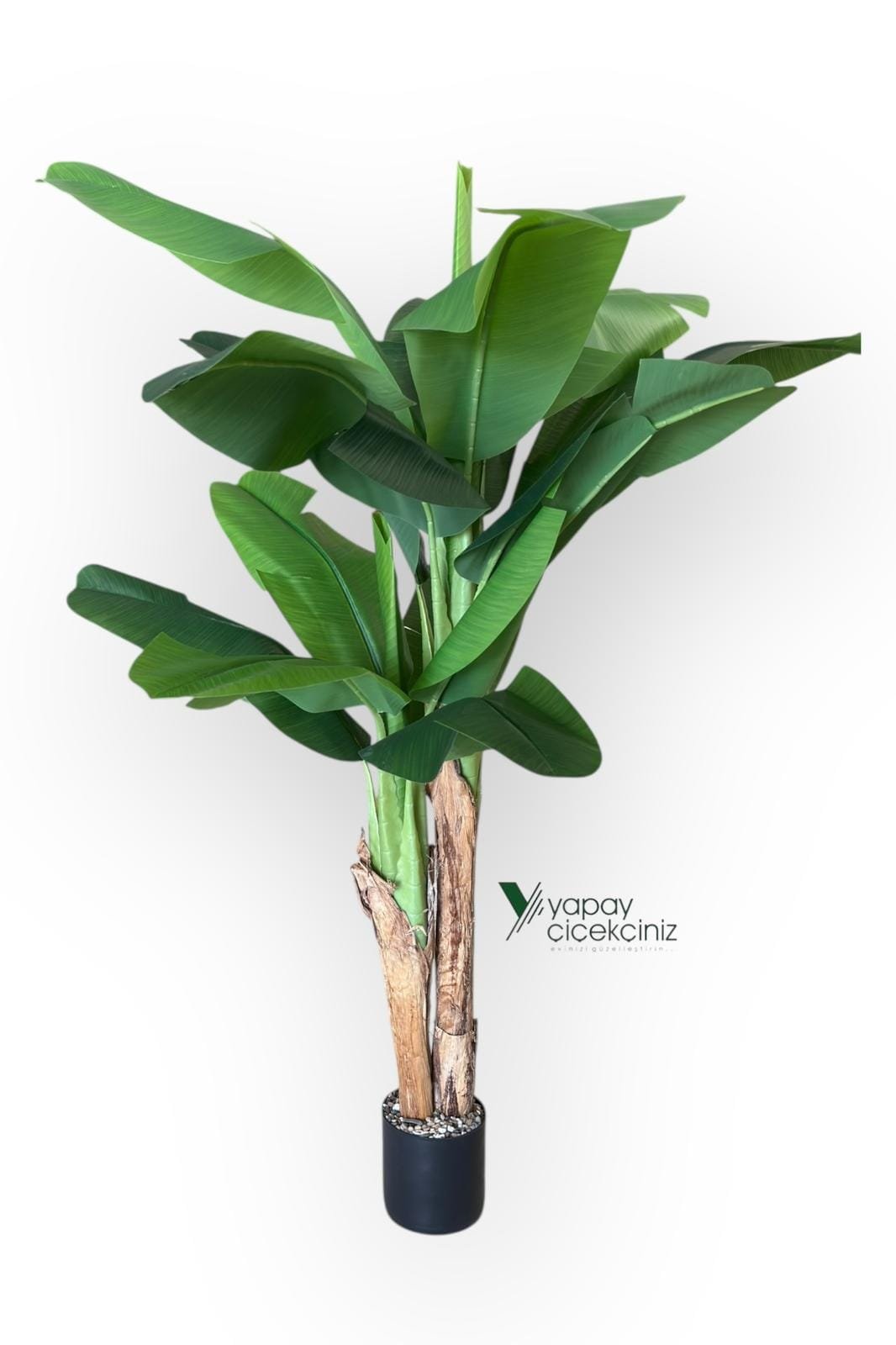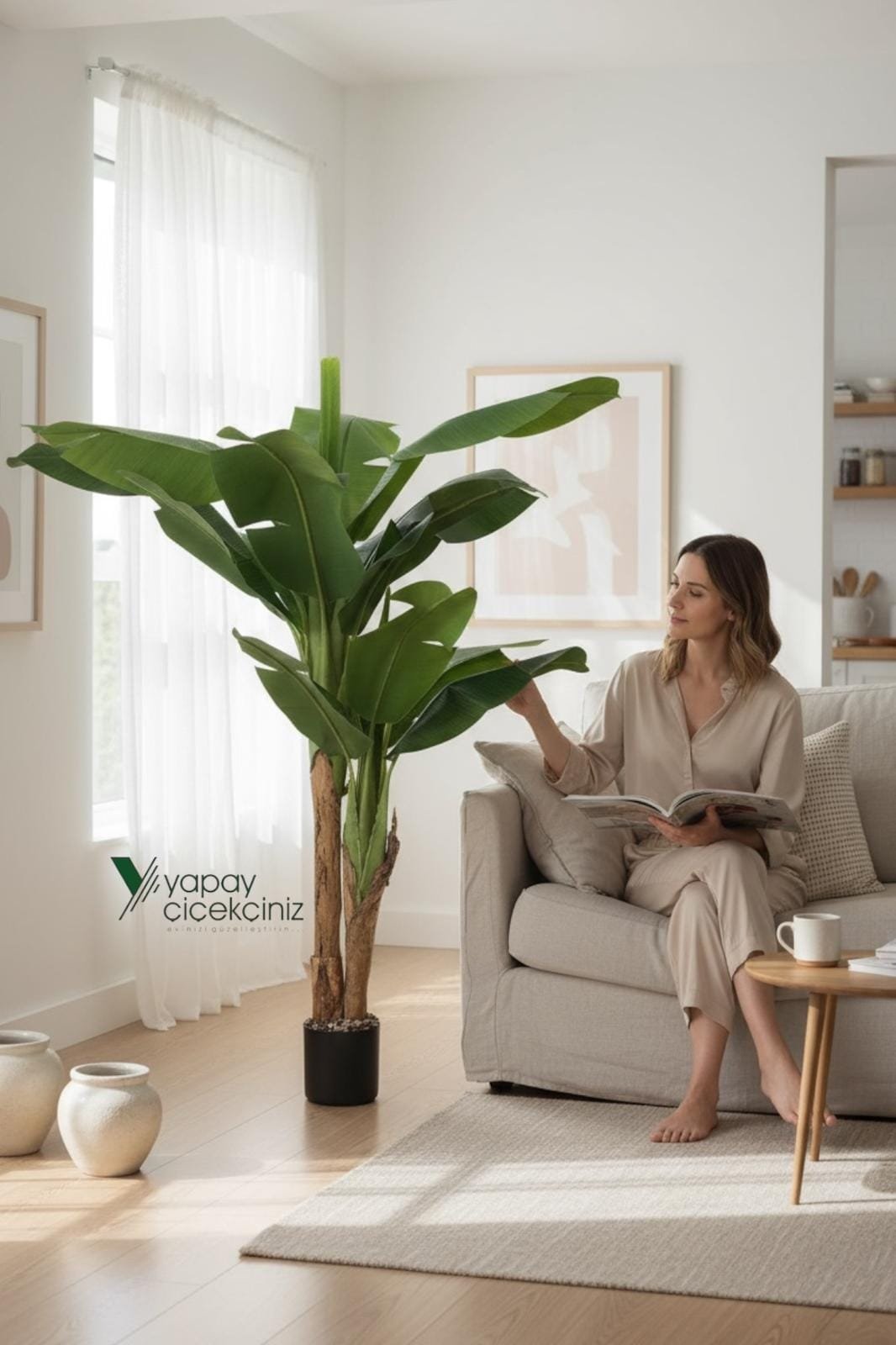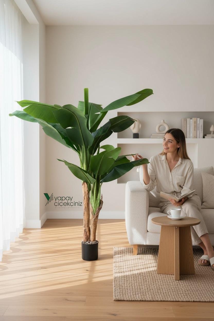 Ev ve ofis dekorasyonlarında tropikal bir atmosfer yaratmak isteyenler için ideal. 13 adet, her biri 65 cm uzunluğunda ıslak dokulu yapraktan oluşan bu 145 cm boyundaki yapay muz ağacı, doğallığıyla dikkat çeker. Özel tasarlanmış yoğun yaprak yapısı sayesinde dolgun ve canlı bir görünüm sunar.