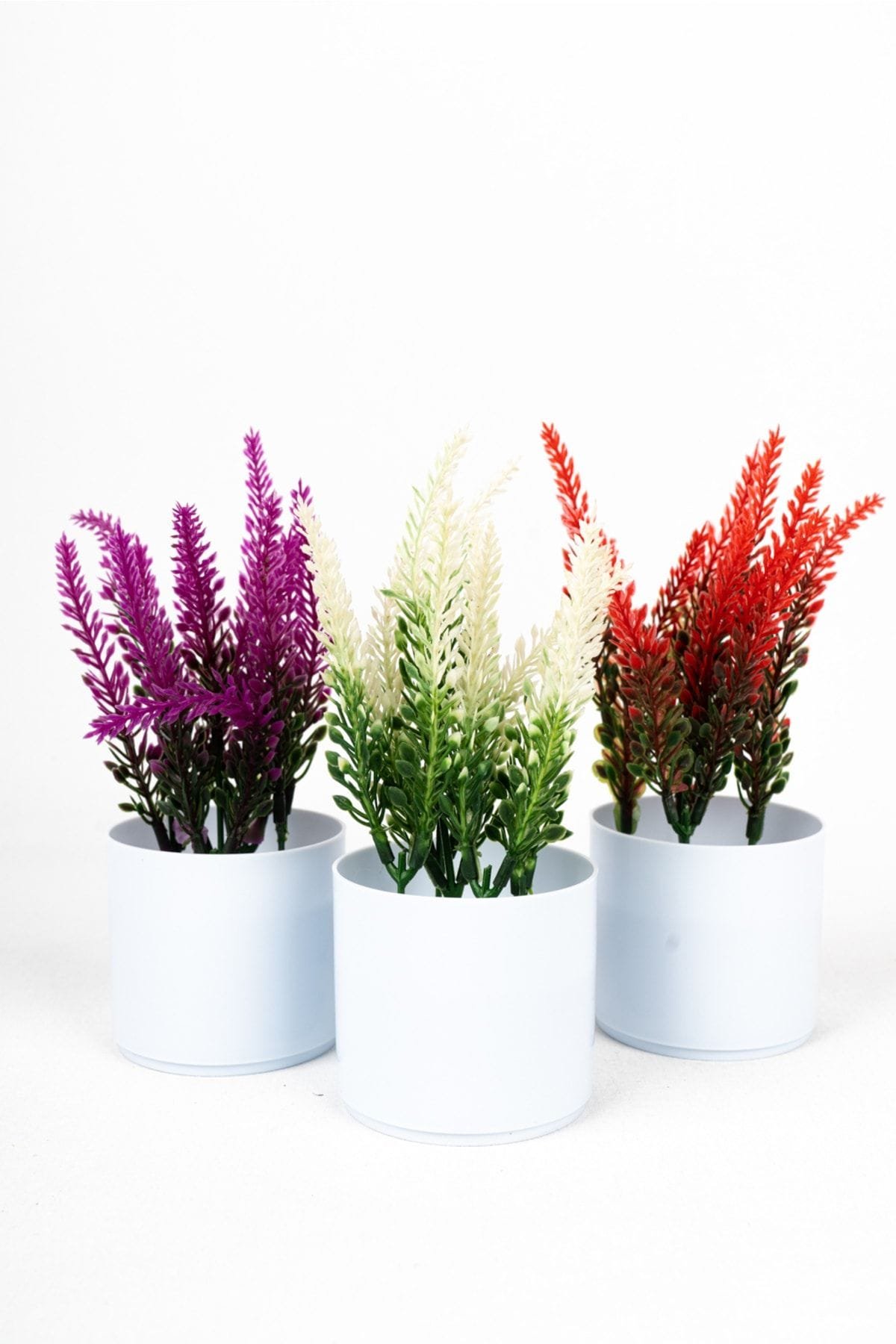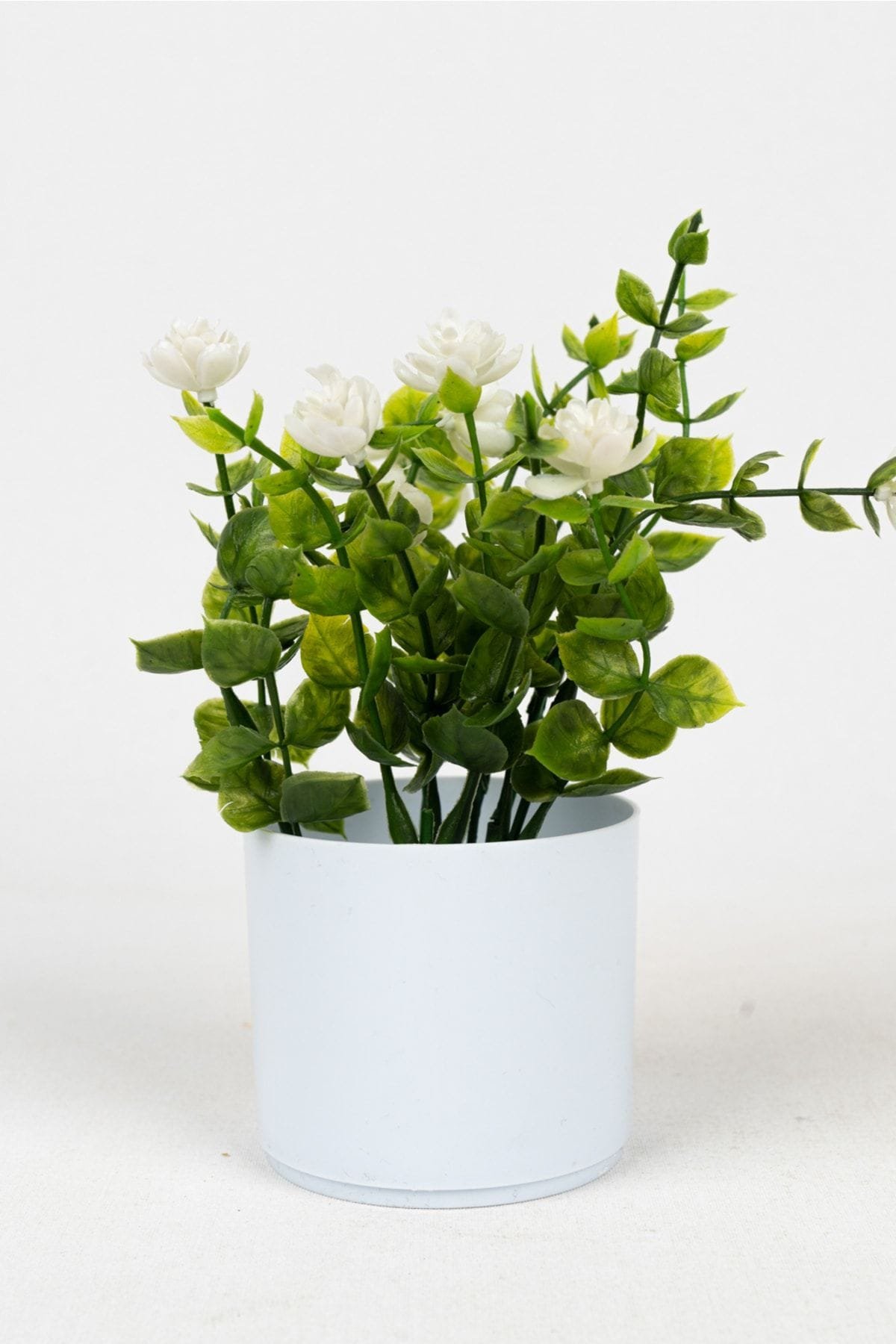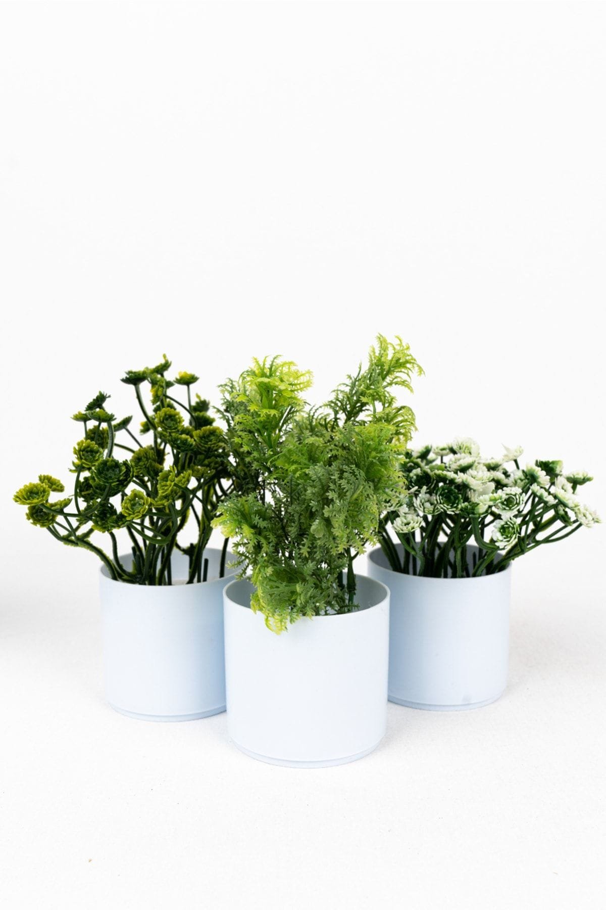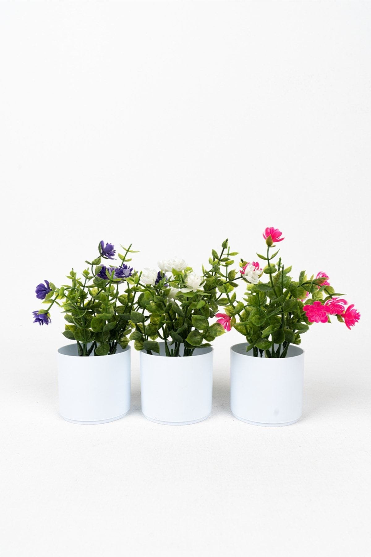 3 Adet Mini Beyaz Saksıda Yapay Çiçek Seti