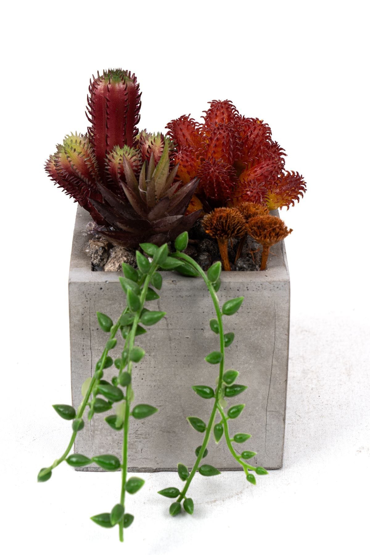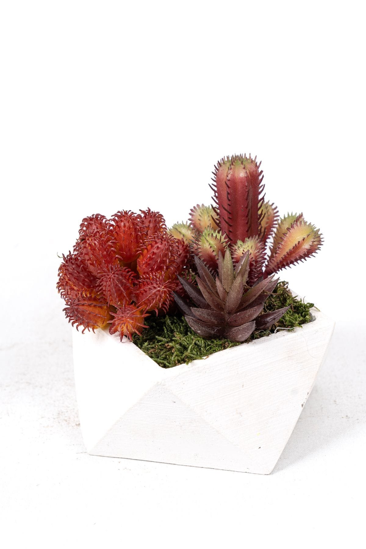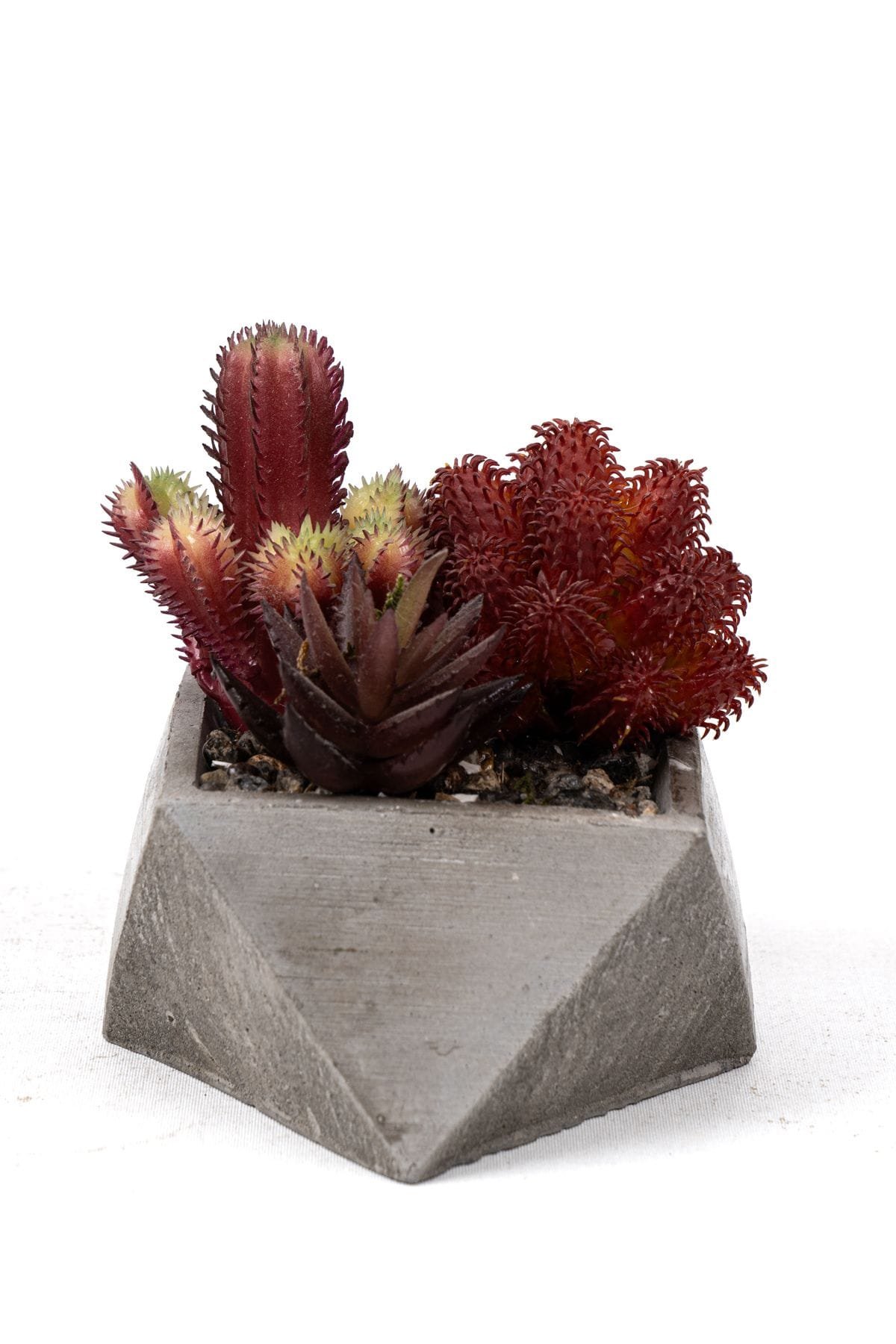 Gri seramik saksıda yeşil yapay kaktüsler, canlı yeşil rengi sayesinde yapay görünümünden çıkıp oldukça canlı bir bitki izlenimi vermektedir. ; Ürün, yaşam alanlarınızın minik ama dikkat çekici objelerinden biri olacaktır. ; Evinizde, ofisinizde, çalışma ve kişisel odalarınızda kısaca tüm yaşam alanlarınızda kullanabilirsiniz. ; Ürün saksı uzunluk:7cm Ürün toplam uzunluk:10-13cm ;