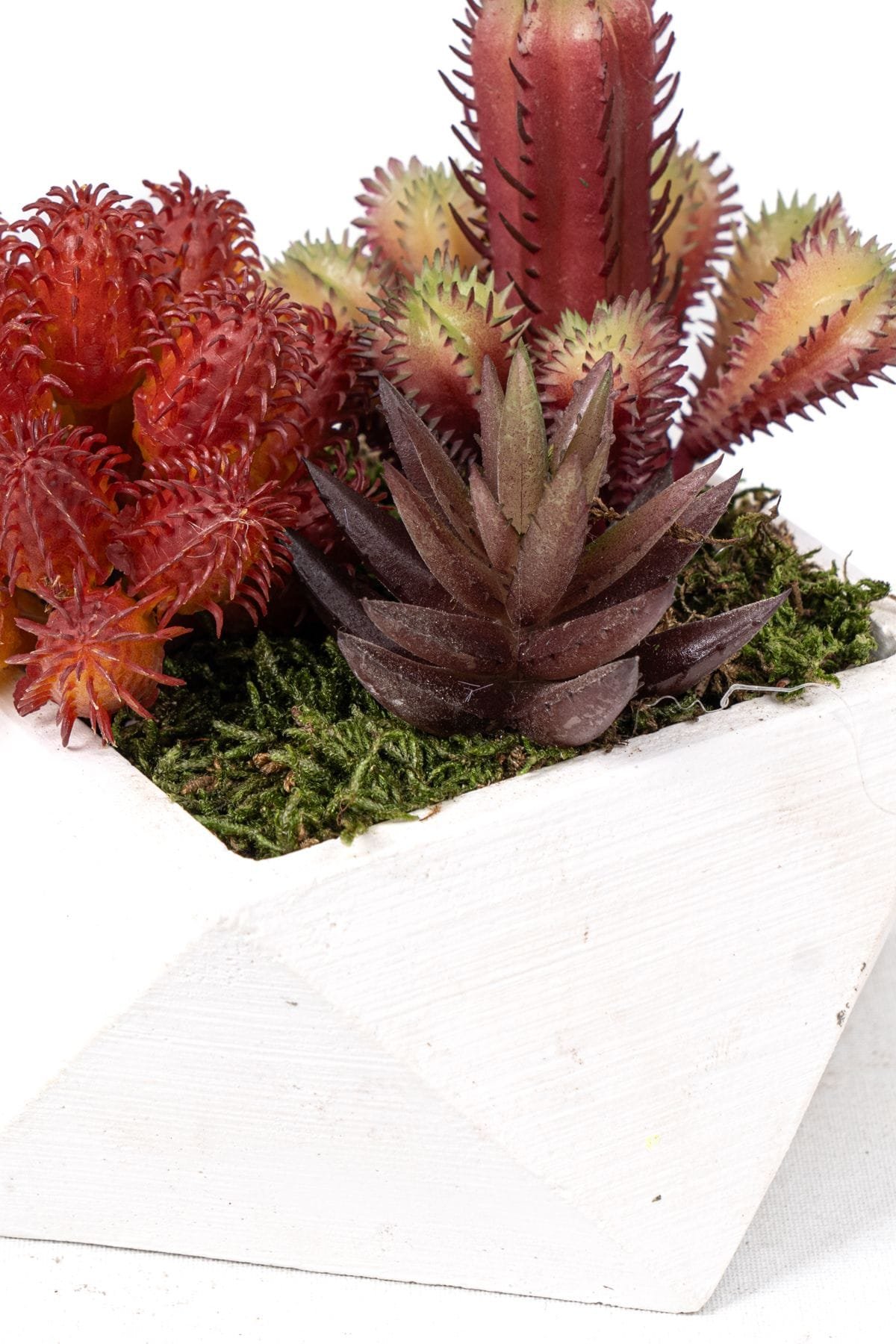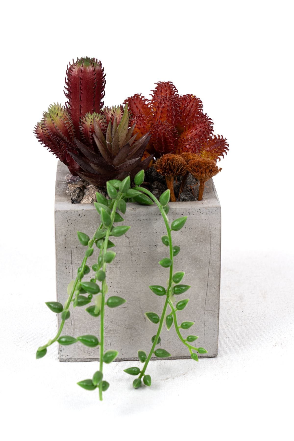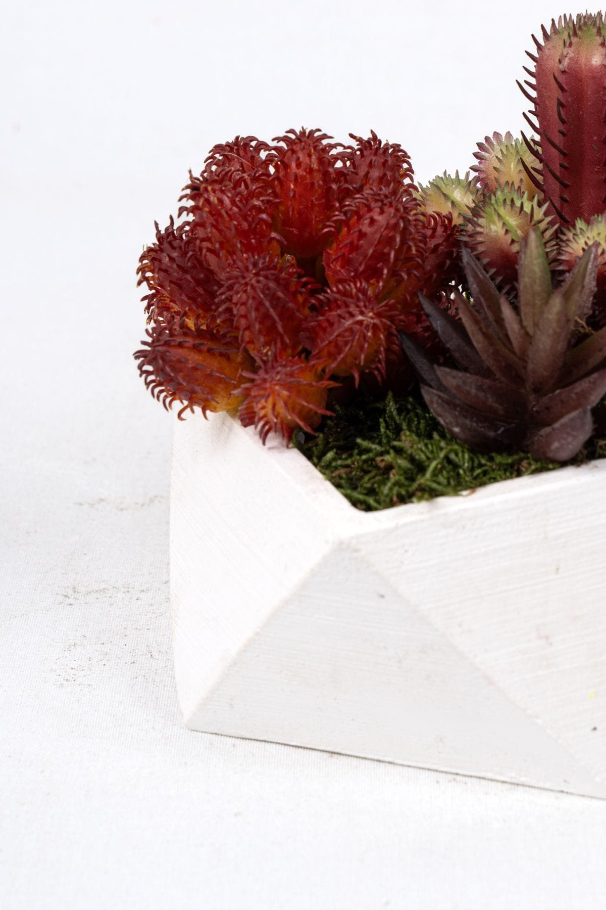Gri seramik saksıda yeşil yapay kaktüsler, canlı yeşil rengi sayesinde yapay görünümünden çıkıp oldukça canlı bir bitki izlenimi vermektedir. ; Ürün, yaşam alanlarınızın minik ama dikkat çekici objelerinden biri olacaktır. ; Evinizde, ofisinizde, çalışma ve kişisel odalarınızda kısaca tüm yaşam alanlarınızda kullanabilirsiniz. ; Ürün saksı uzunluk:7cm Ürün toplam uzunluk:10-13cm ;