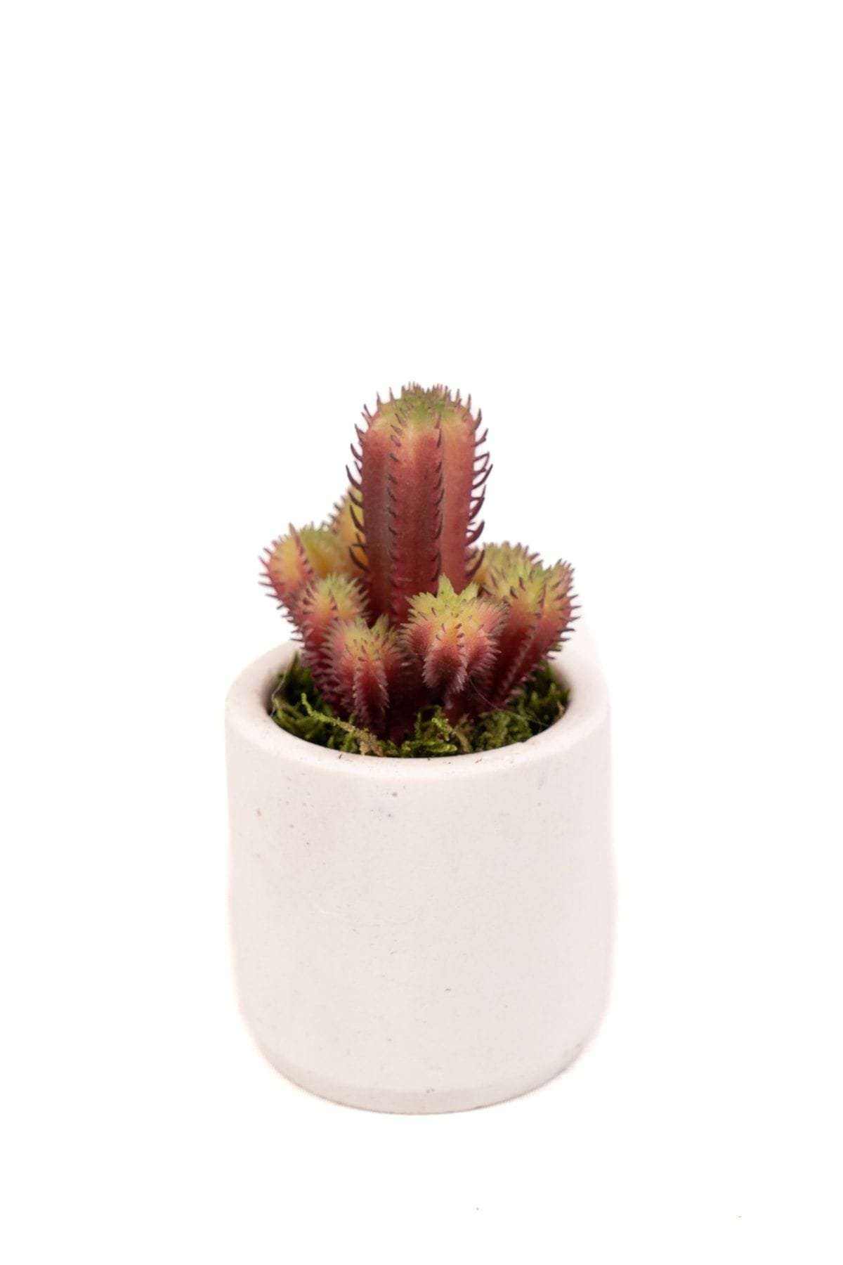 - Beyaz Beton Saksıda Bordo Renkli 3 Lü Kaktüs Seti