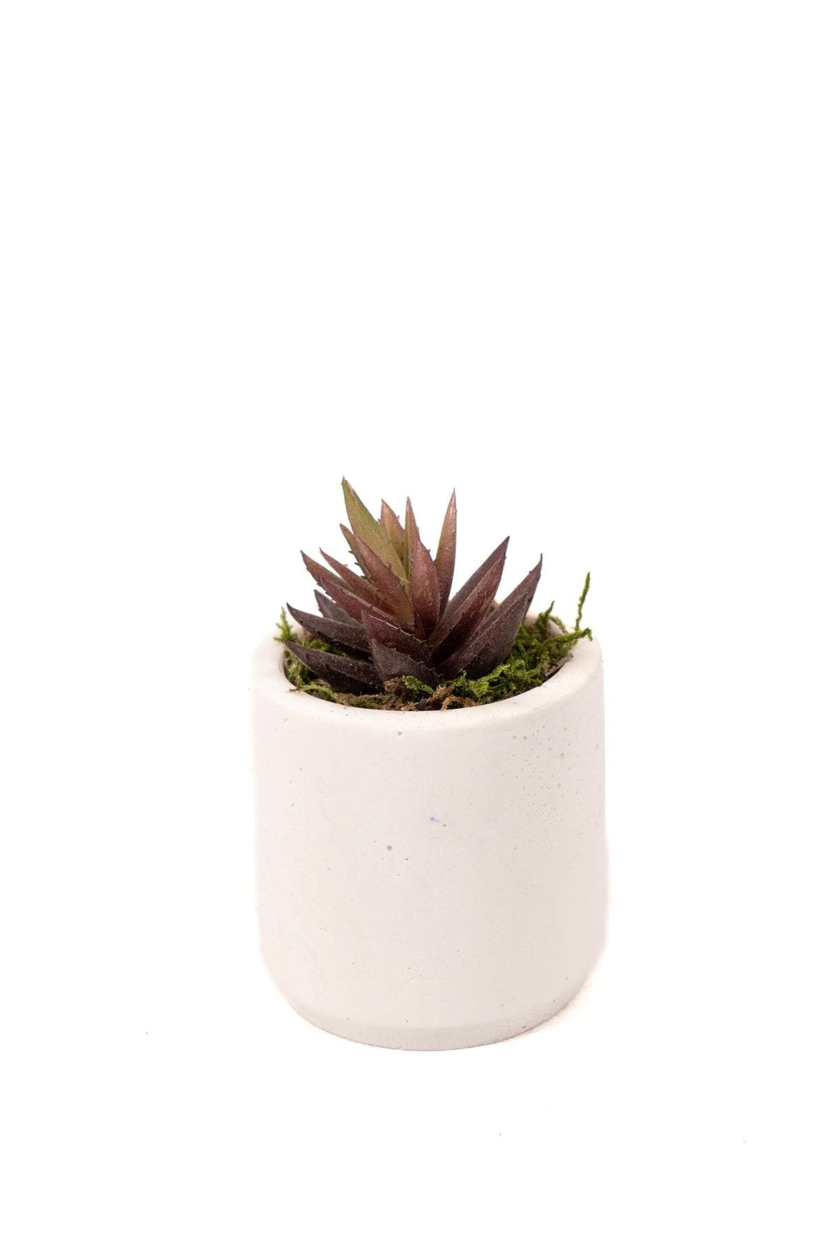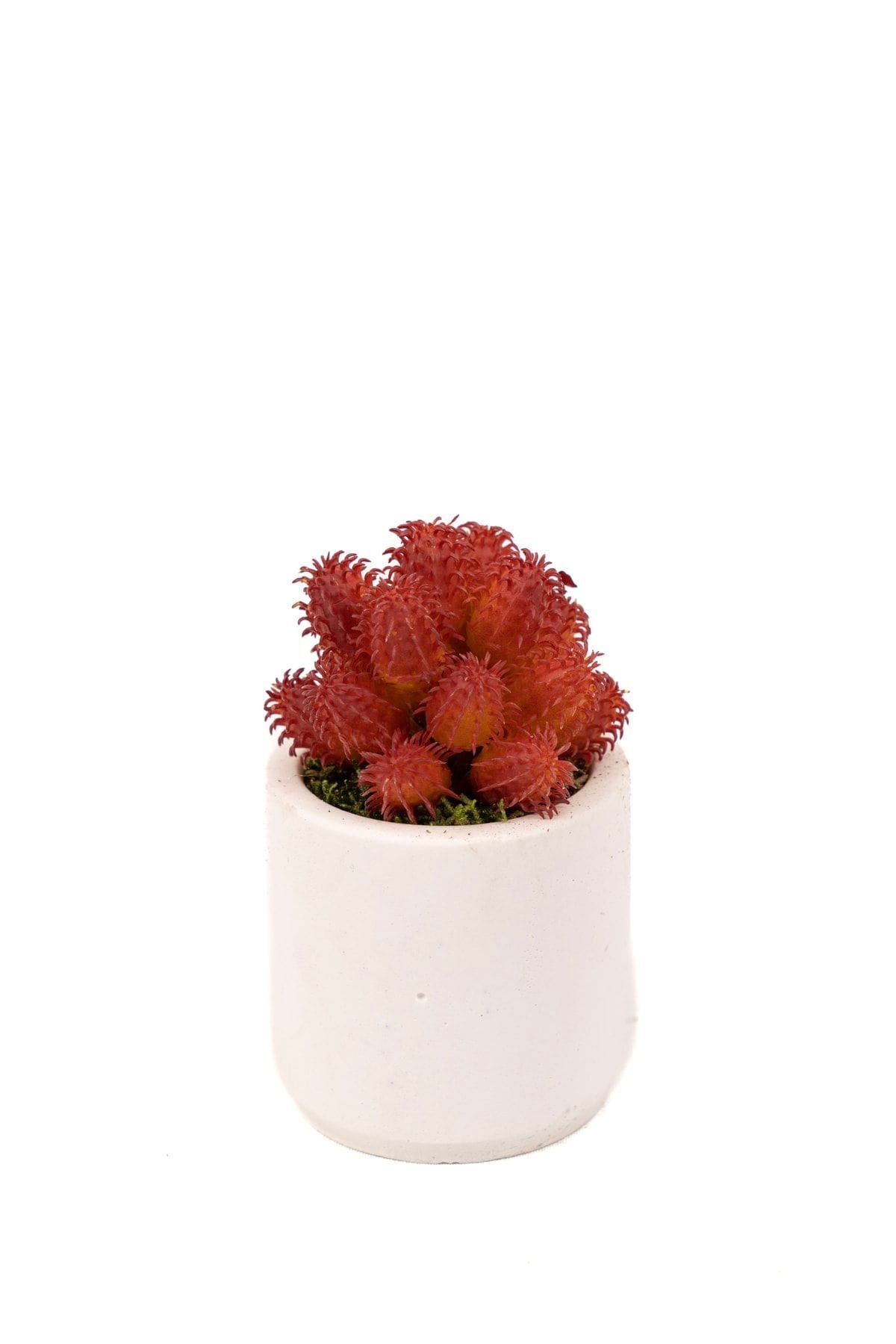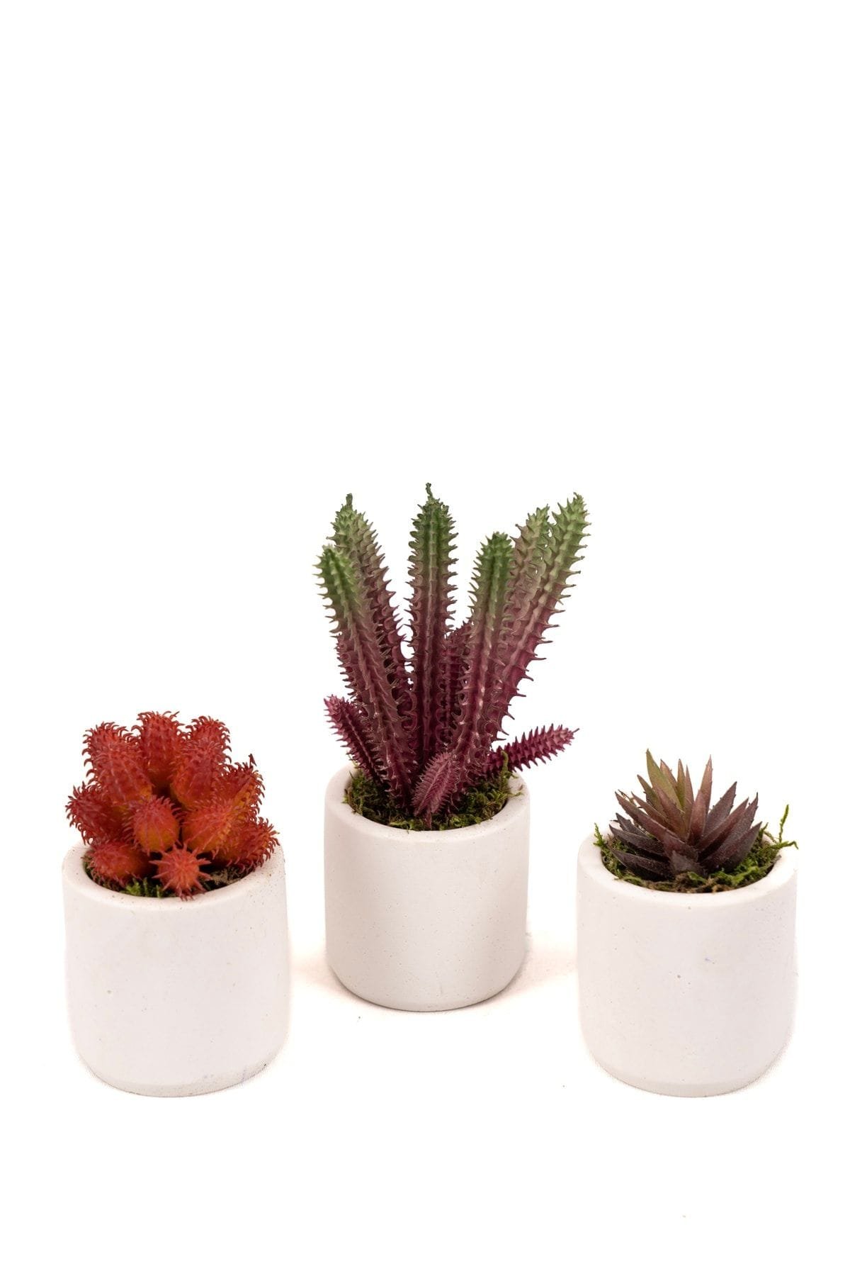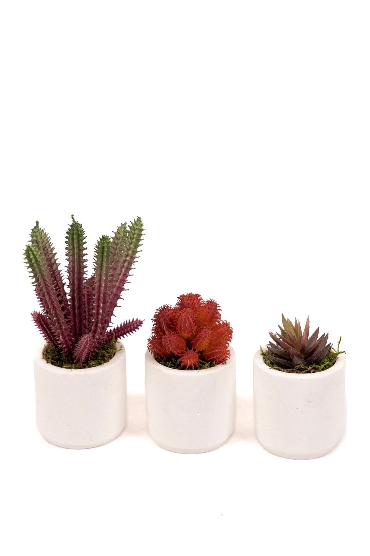 Beyaz Beton Saksıda Bordo Renkli 3 Lü Kaktüs Seti