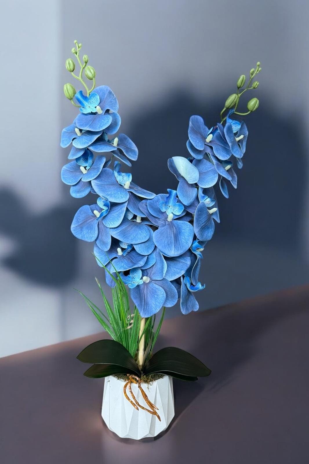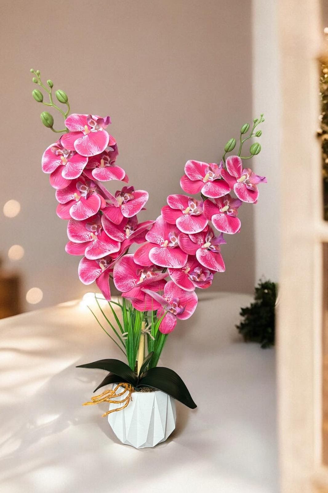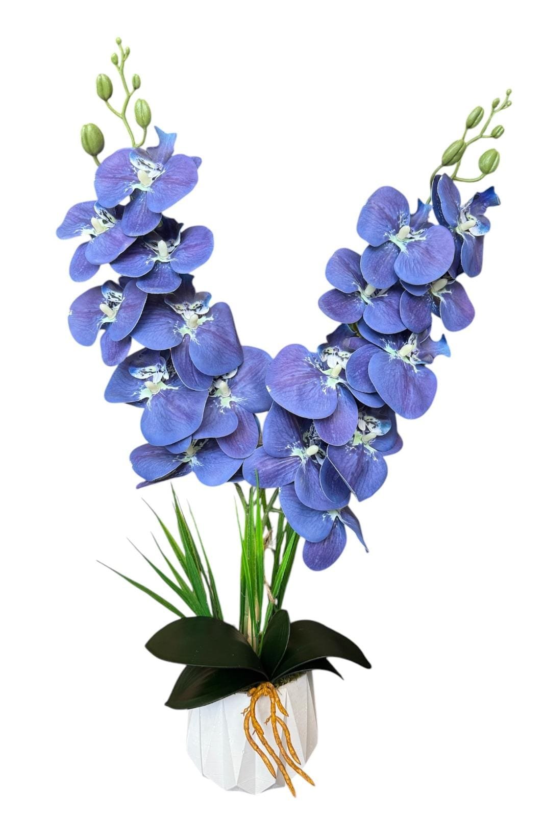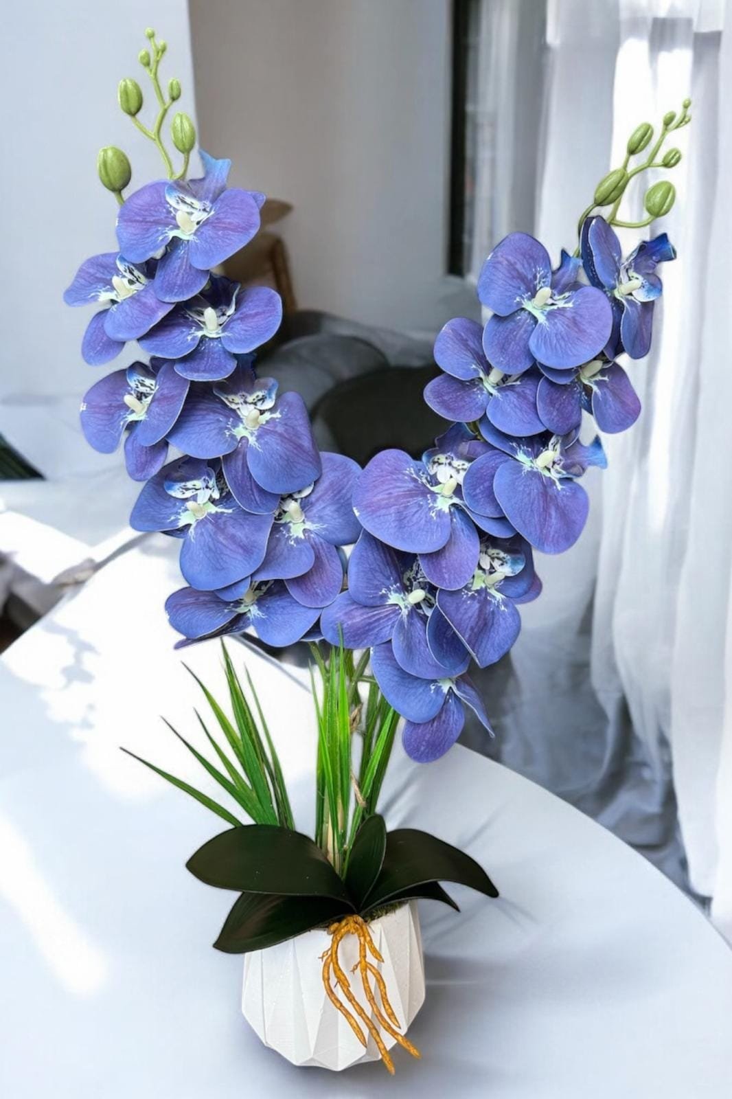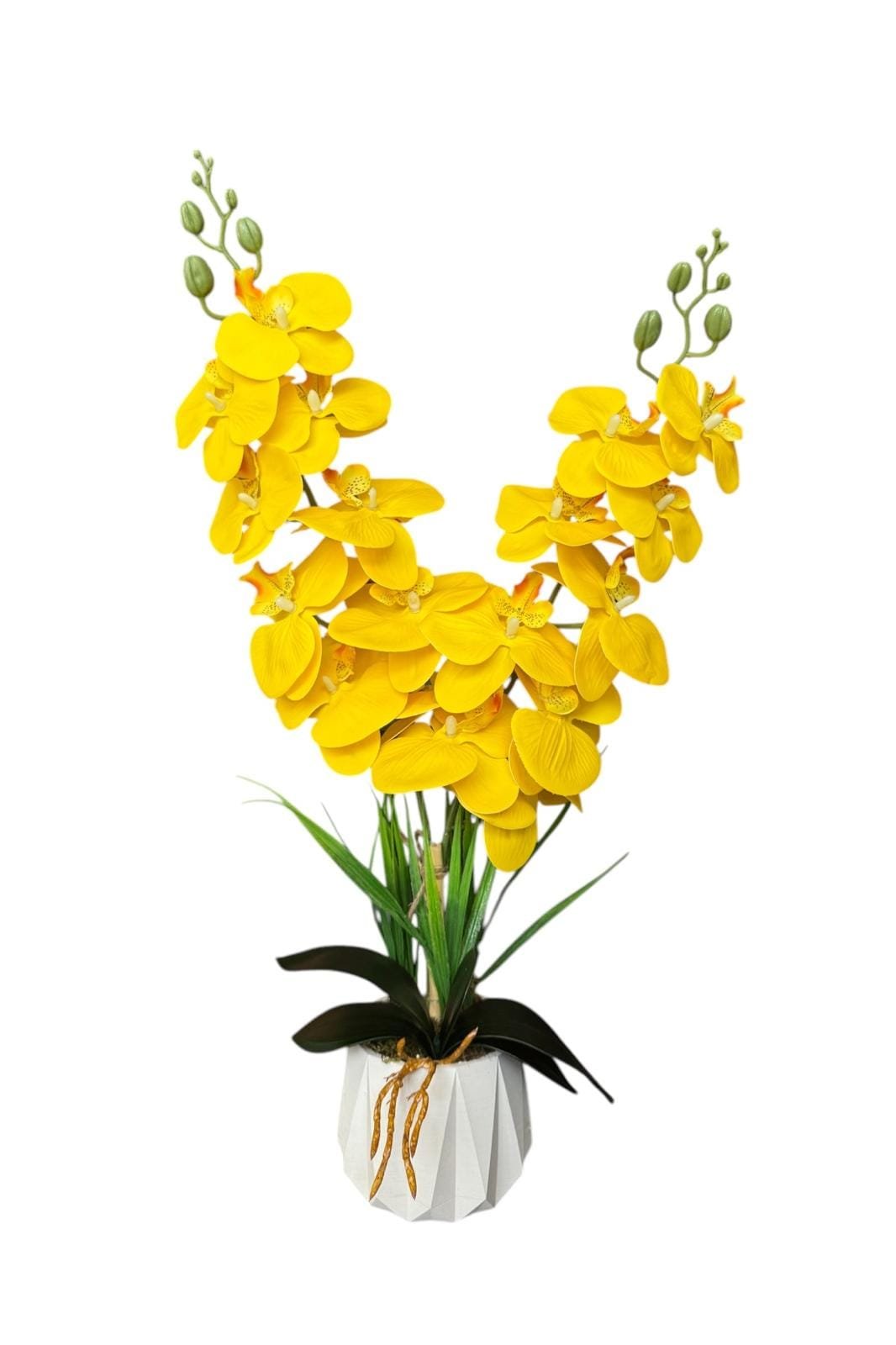Evinizin veya ofisinizin atmosferine sofistike bir dokunuş katmak için tasarlanan bu yapay orkide ağacı, doğal güzelliği ve zarafetiyle göz kamaştırıyor. 60 cm boyutu ve beyaz beton saksısıyla her mekana kolayca uyum sağlayan bu özel tasarım, iki adet yüksek kaliteli, ıslak görünümlü orkide dalıyla gerçeğinden ayırt edilmesi zor bir estetik sunuyor.
