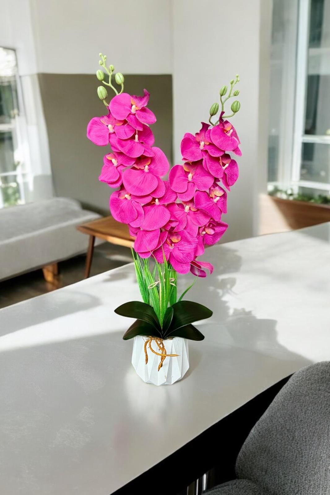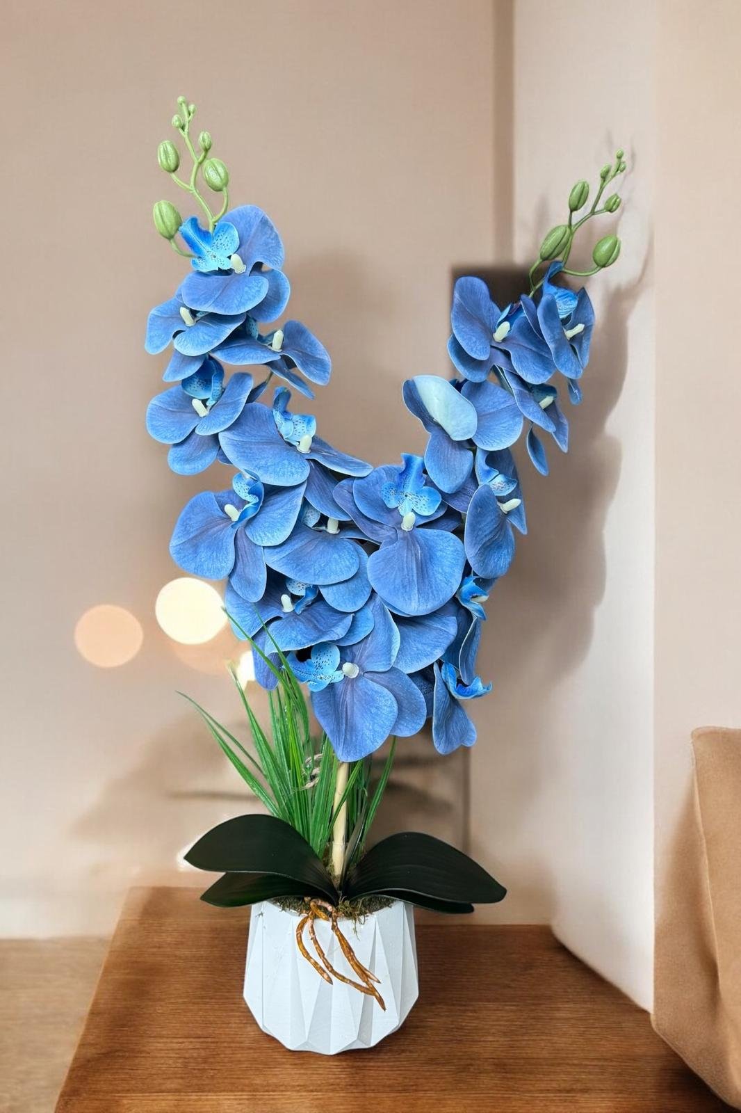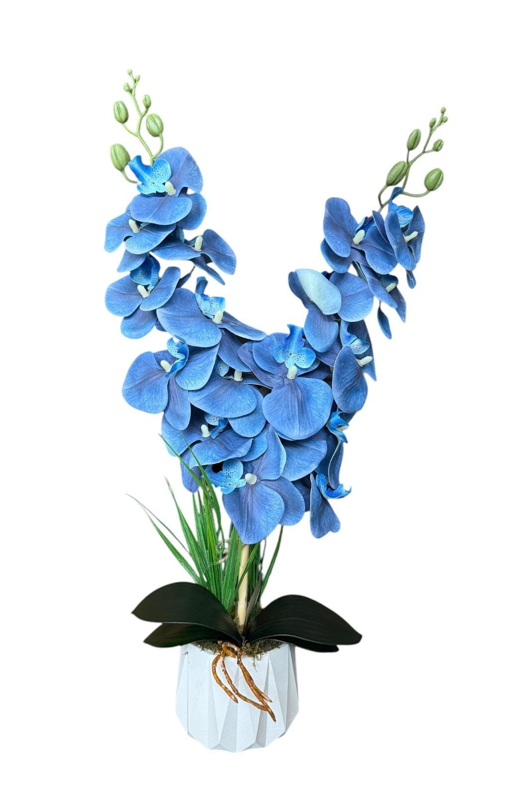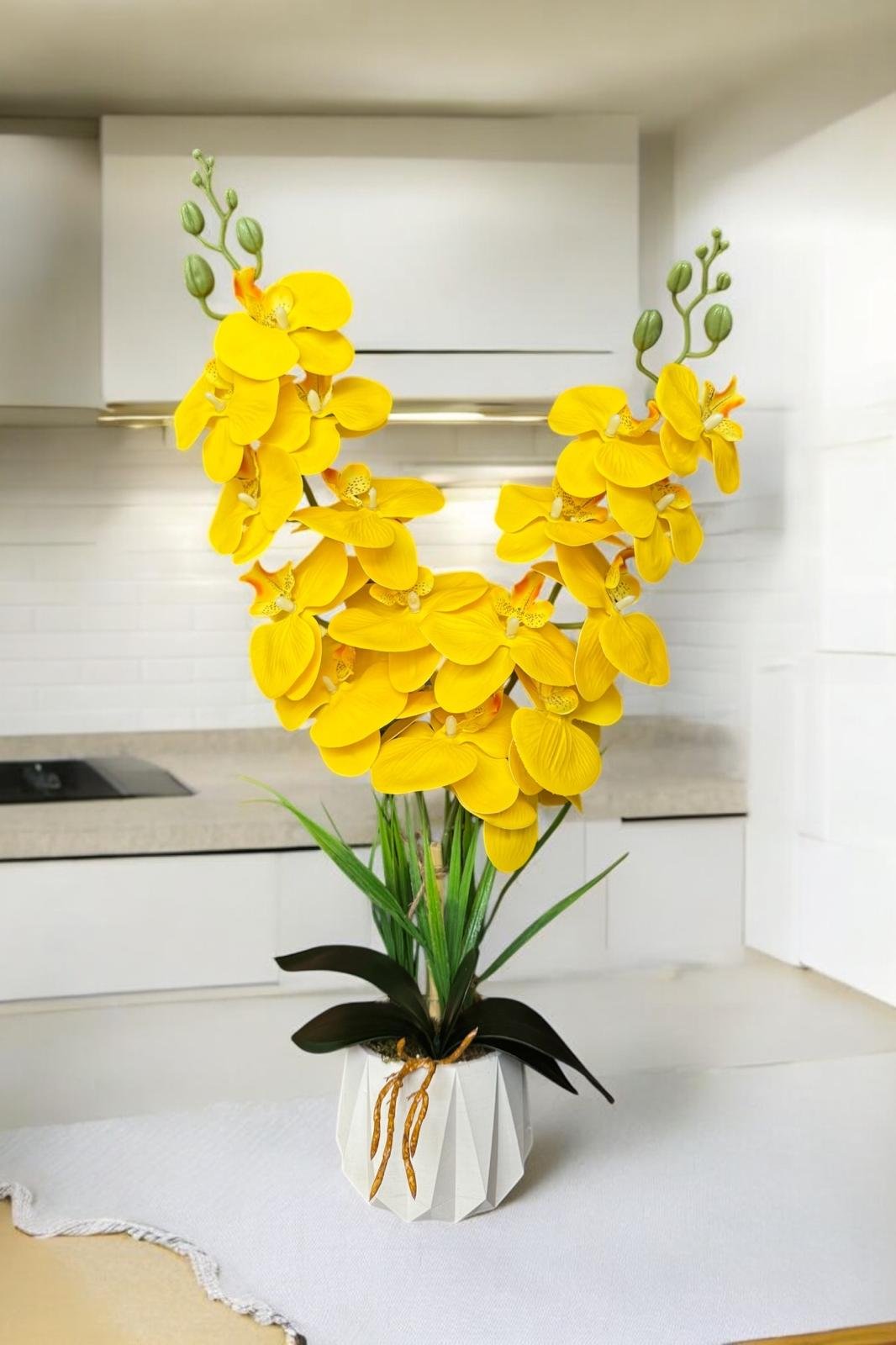 Evinizin veya ofisinizin atmosferine sofistike bir dokunuş katmak için tasarlanan bu yapay orkide ağacı, doğal güzelliği ve zarafetiyle göz kamaştırıyor. 60 cm boyutu ve beyaz beton saksısıyla her mekana kolayca uyum sağlayan bu özel tasarım, iki adet yüksek kaliteli, ıslak görünümlü orkide dalıyla gerçeğinden ayırt edilmesi zor bir estetik sunuyor.