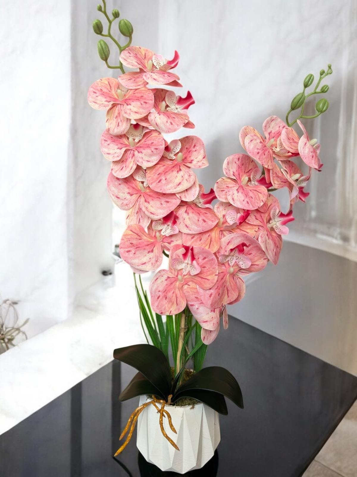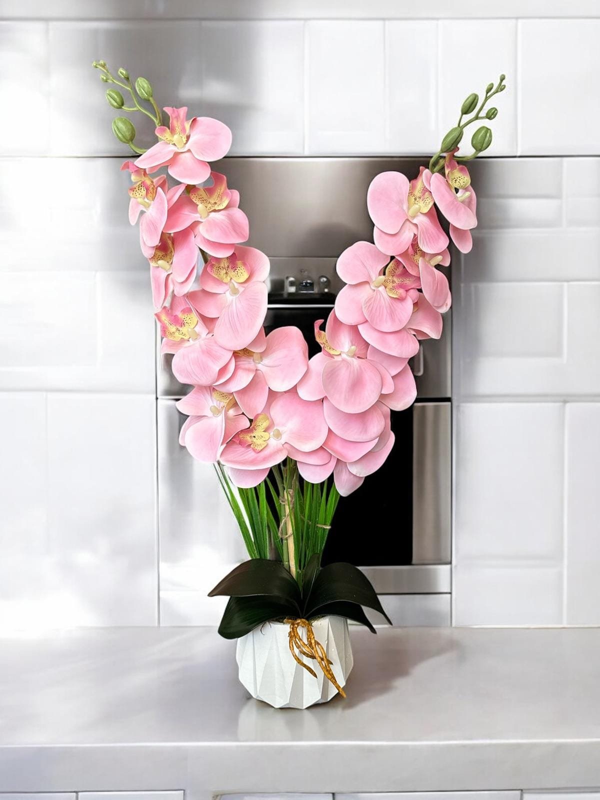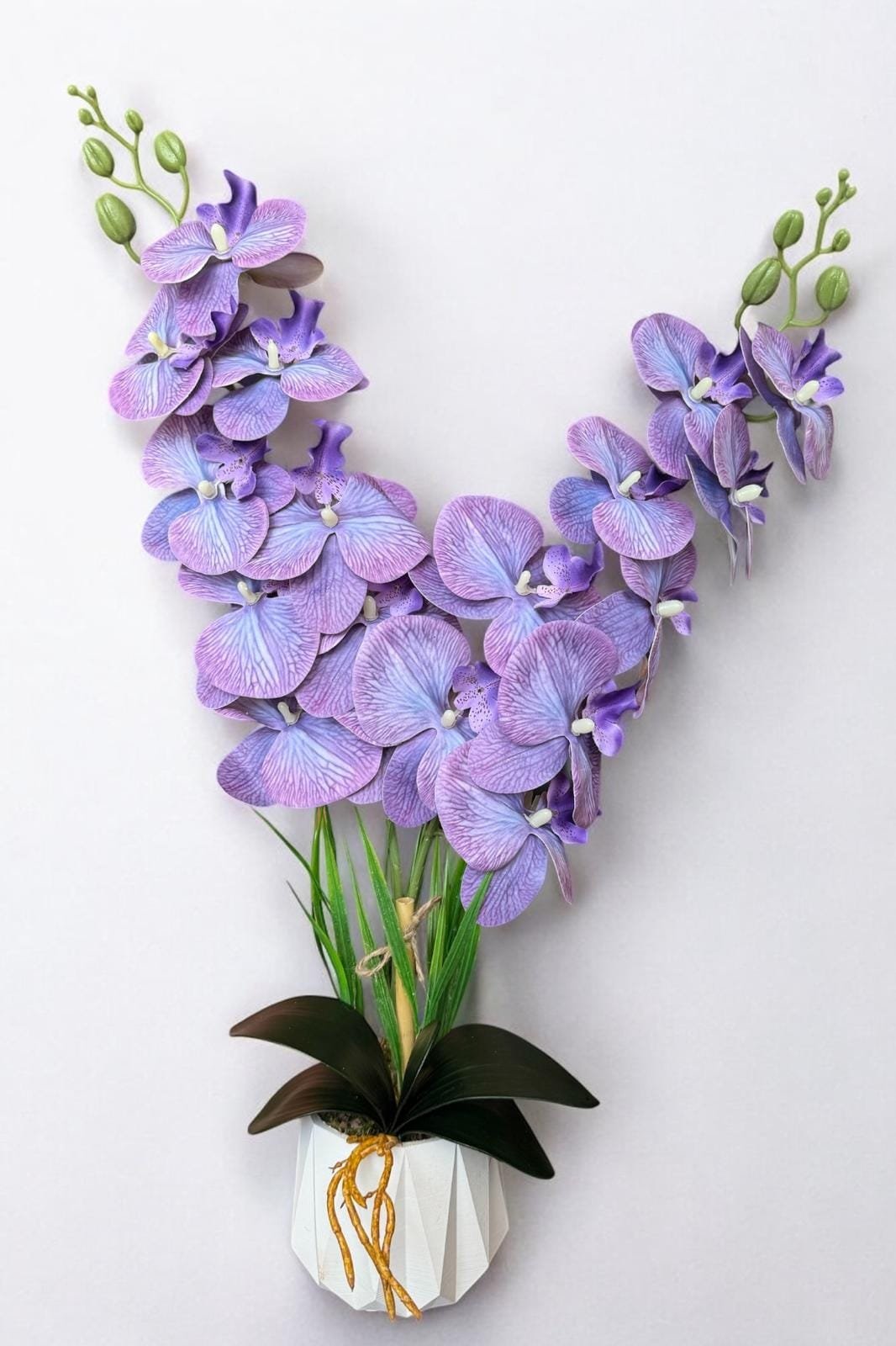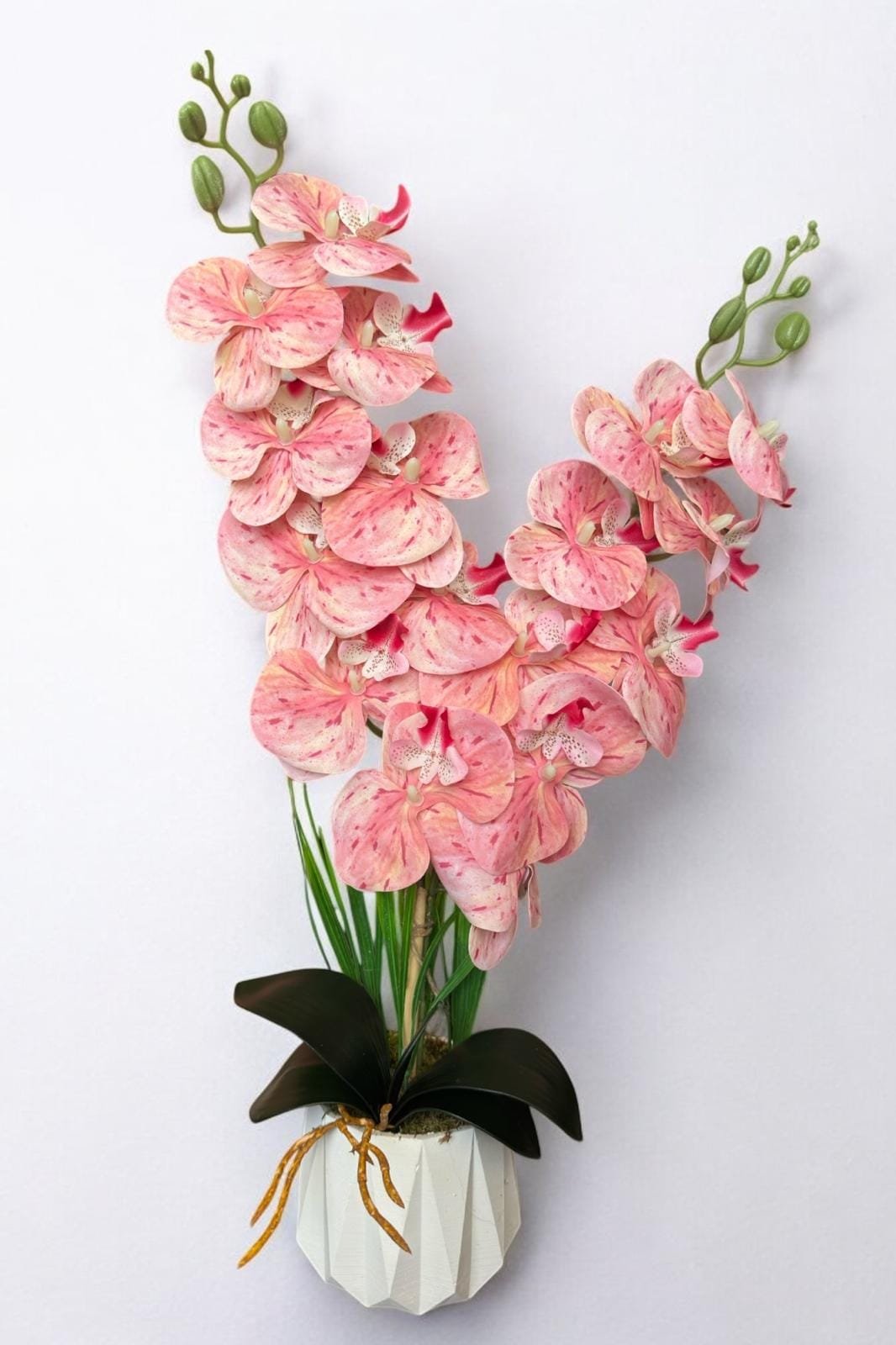 * Gerçekçi Görünüm: Islak dokulu orkide dalları, canlı bir orkide çiçeğinin tazeliğini ve doğallığını yansıtarak mekanınıza ferah bir hava katıyor.