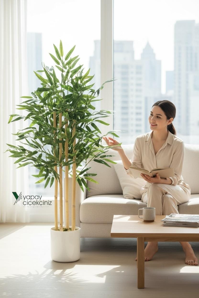 Bu özel tasarlanmış yapay bambu ağacı ile yaşam alanlarınıza estetik, düzen ve modern bir hava katın.