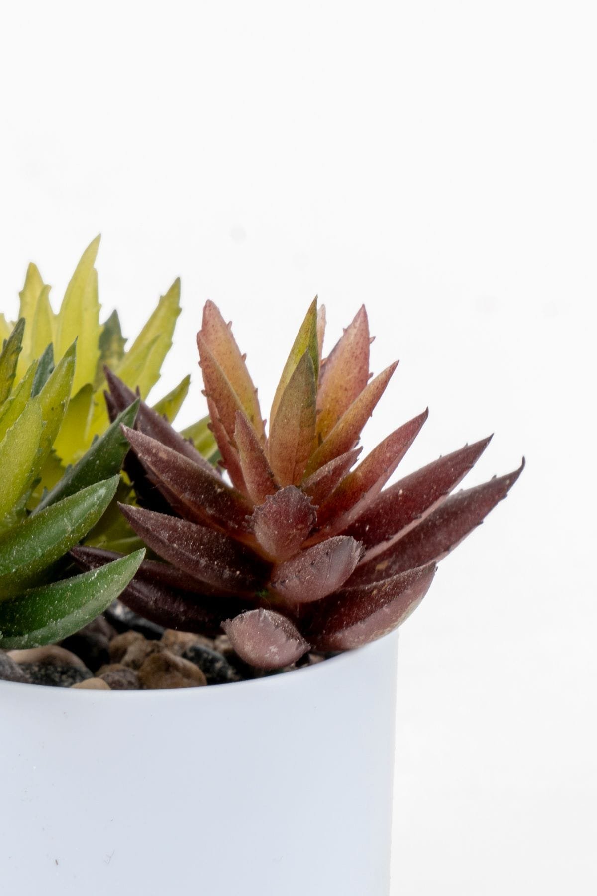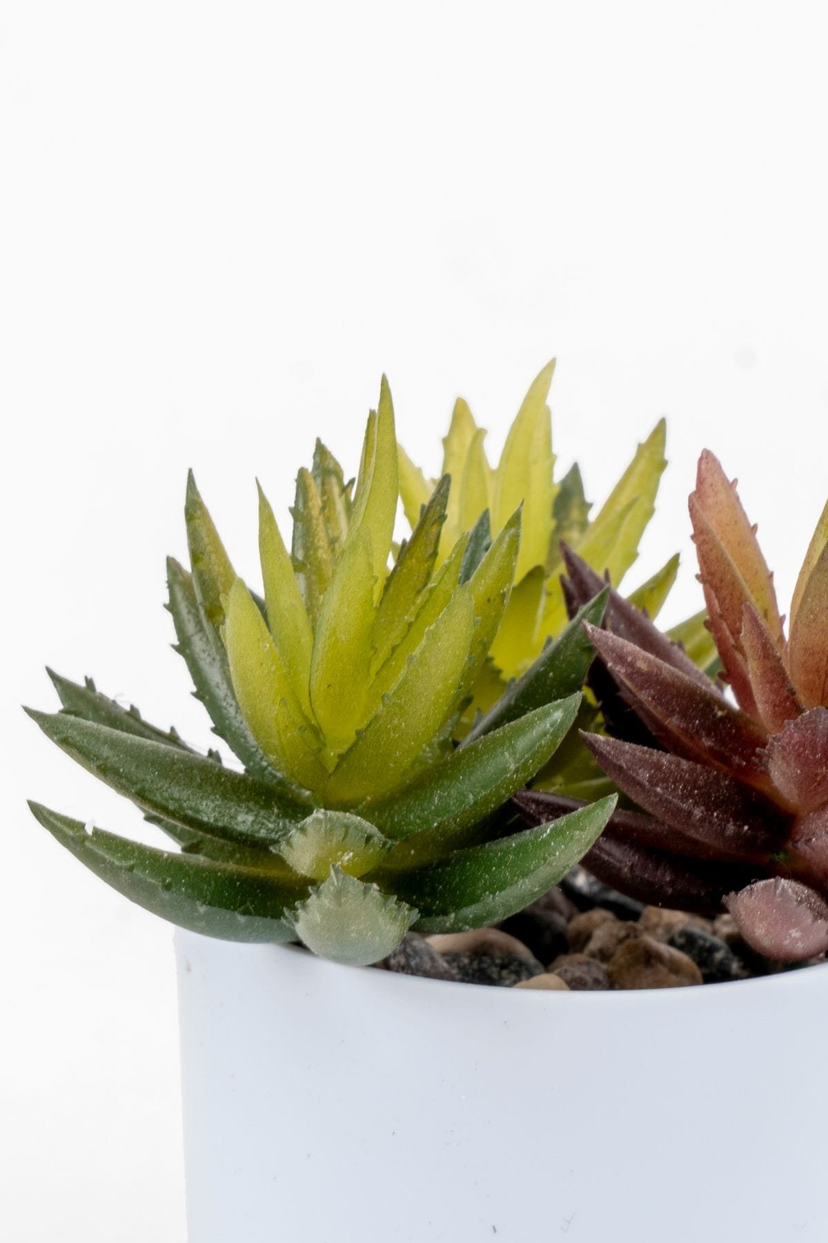 Doğal taşlarla kaplı beyaz renkli saksısında, Renkli yapraklarıyla sakinliği simgeleyen sukulent kaktüsler ile dekorasyonlara renk katabilir, doğal bir görsellik oluşturabilirsiniz. ; Ürün, yaşam alanlarınızın dikkat çekici objelerinden biri olacaktır. ; Evinizde, ofisinizde, çalışma ve kişisel odalarınızda kısaca tüm yaşam alanlarınızda kullanabilirsiniz. ; Gerçek çiçeklerin aksine, ağacımız sonsuza dek canlı ve yeşil rengini korumaktadır. ; Her hangi bir bakım gerektirmez. ; Ağaç kutudan çıkarıldığında tam boyutuna ulaşması için sadece 2-3 dakikaya ihtiyacınız vardır. ; Tüm dallar, gerektiğinde farklı konumlara ayarlanabilmeleri için sağlam metal tellerle donatılmıştır, ayrıca mini ışıkları ve diğer küçük nesneleri destekleyecek kadar güçlüdürler. ; Çiçek plastik saksı içerisine beton ile sabitlenmiş olup, çocuklarınız ve evcil hayvanlarınız temas ettiğinde hemen devrilme yapmaz. ; Salon çiçeği olarak dekorasyonlarınıza ve tezgahlarınıza değer katabilirsiniz. ; Saksı rengi:Beyaz ; Saksı yüksekliği:6,5 cm ; Saksı çapı:6,5 cm ; Saksı dahil toplam yükseklik:13 cm-20 cm ;