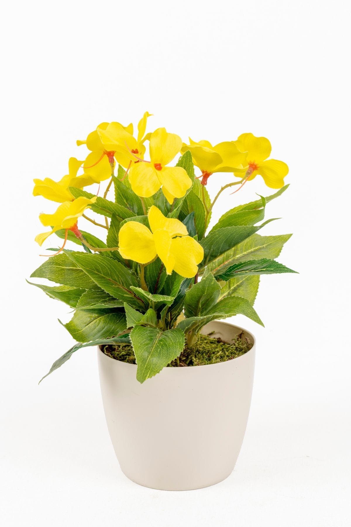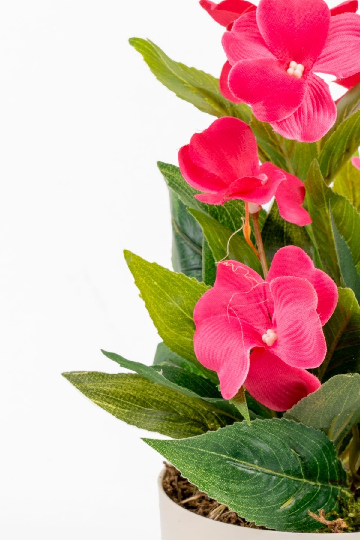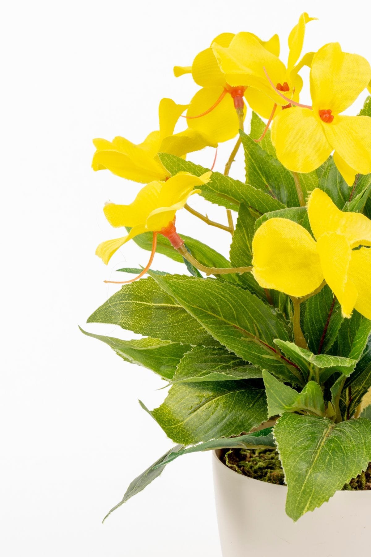 - Taş Detaylı Beyaz Saksıda 12 Yapraklı 50 cm Yapay Salon Çiçeği