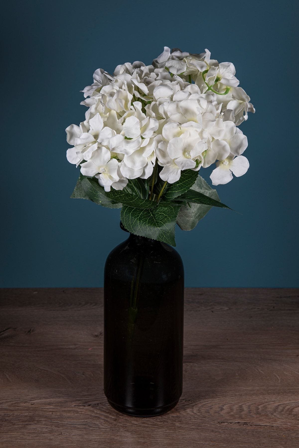 - Taş Detaylı Beyaz Saksıda 12 Yapraklı 50 cm Yapay Salon Çiçeği