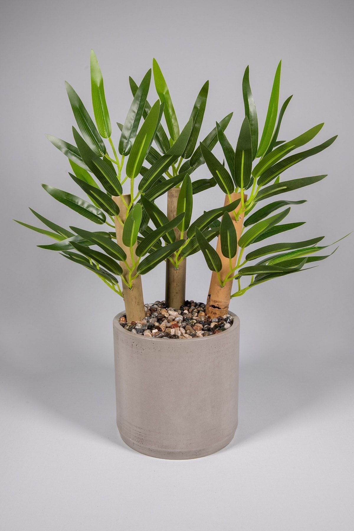 Handmade gri beton saksısıyla öne çıkan bambu ağacının saksısında iyi bir temel oluşturulabilmek için yapay köpük kullanılmıştır, köpük üstü ise taşlarla örtülmüştür taşlar ise özel yapıştırıcı ile yapıştırılmıştır böylelikle yer değiştirme ve taşıma durumsallarında çiçeğiniz ilk gün ki görünmeye devam eder. Ürün saksı boyu:13 cm Ürün toplam yükseklik:45cm