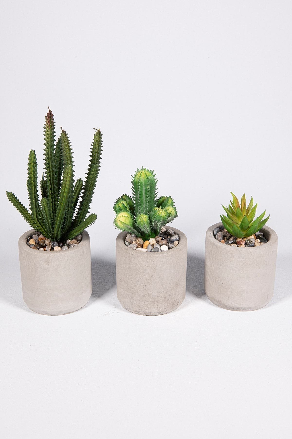 Gri Beton Saksıda Bordo Renkli 3 Lü Kaktüs Seti