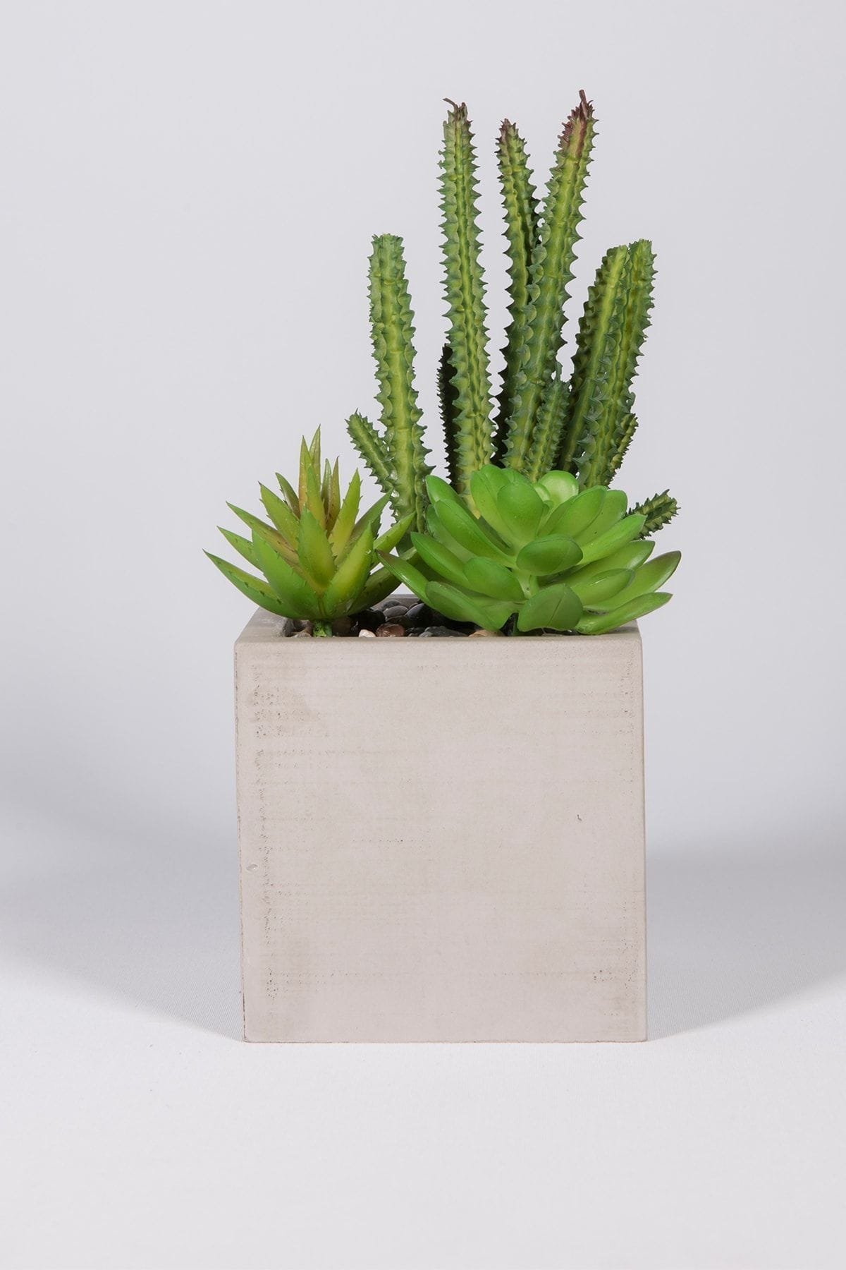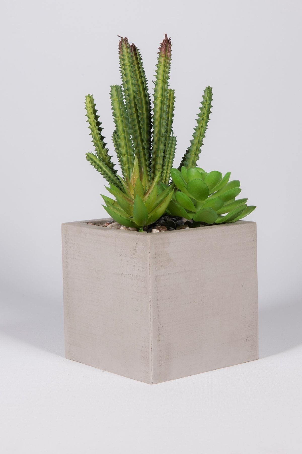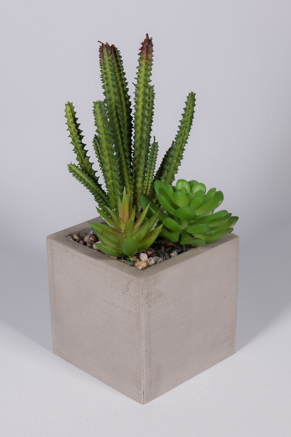 Doğal görünümlü beton saksıda, canlı renkleriyle dikkat çeken kaktüsler yer alır.; Her biri ayrı bir zarafetle tasarlanmış kaktüslerin canlı renkleri, mekanınıza doğal bir dokunuş katar.; Saksı içindeki kaktüsler, dayanıklı yapısıyla uzun süreli kullanım imkanı sunar.; Beton saksının modern tasarımı, ev veya ofis dekorasyonunuzda şık bir detay olarak öne çıkar.; Kaktüslerin uzun süre canlılığını korumasına yardımcı olan yapay malzemeden üretilmiştir, böylece bakım gerektirmez.; Saksının gri rengi, her türlü dekorasyona kolayca uyum sağlayarak mekanınıza modern bir hava katar.;