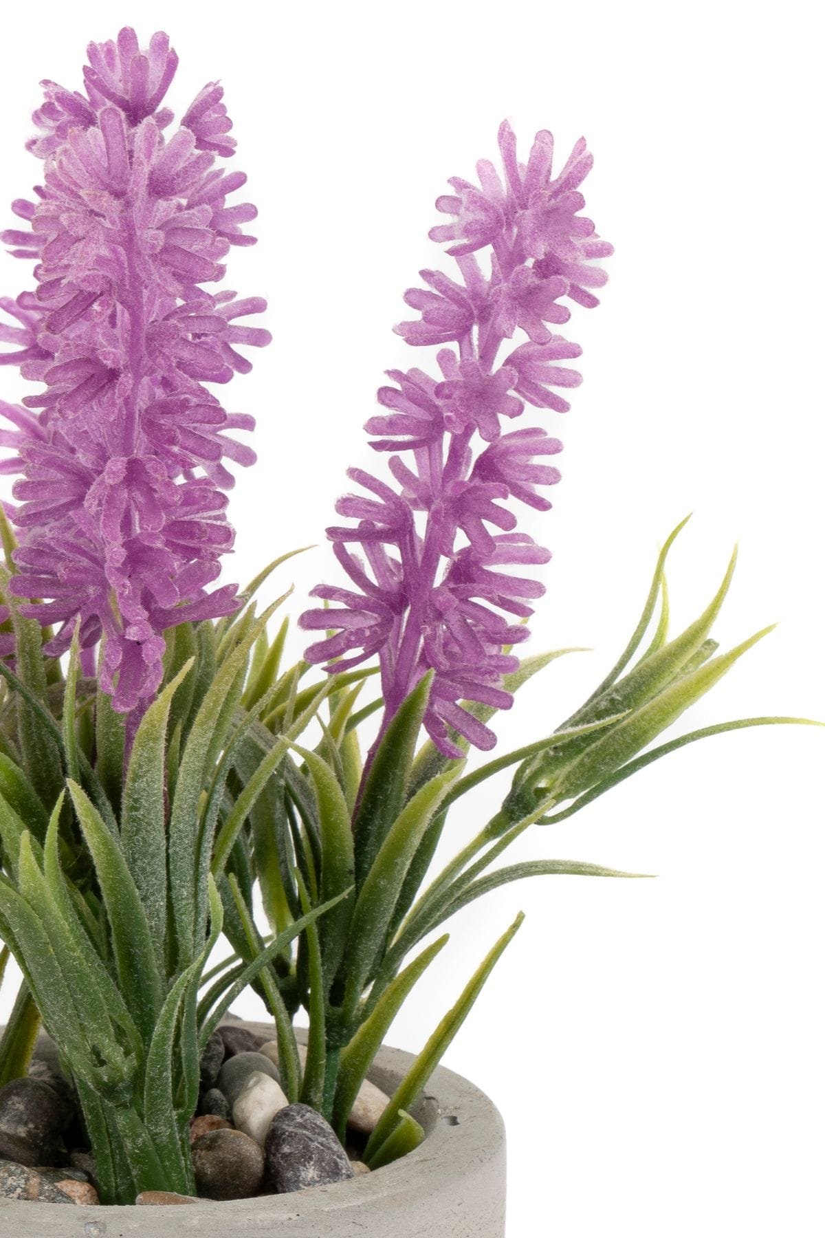 GRİ BETON SAKSIDA PEMBE RENKLİ YAPAY LAVANTA DEMETİ