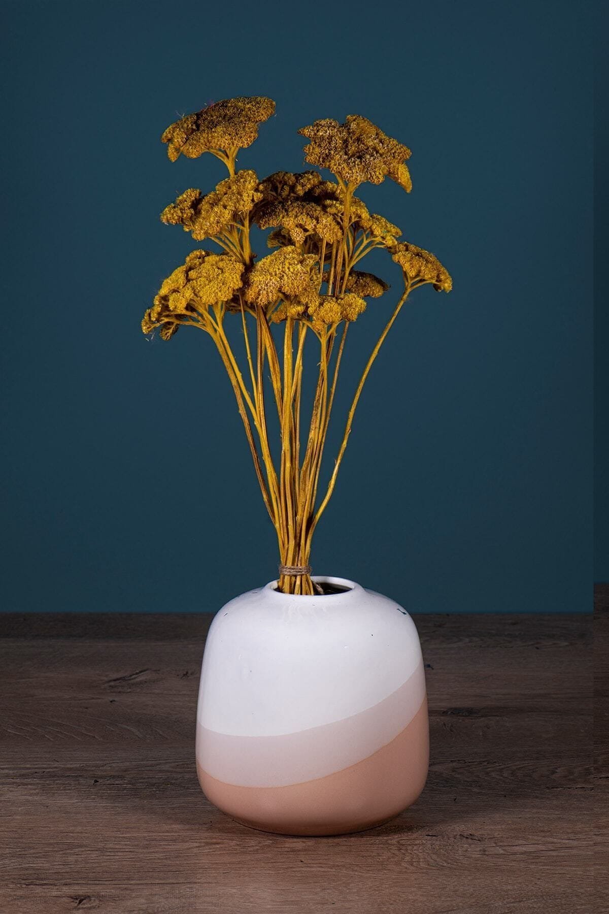 - Taş Detaylı Beyaz Saksıda 12 Yapraklı 50 cm Yapay Salon Çiçeği