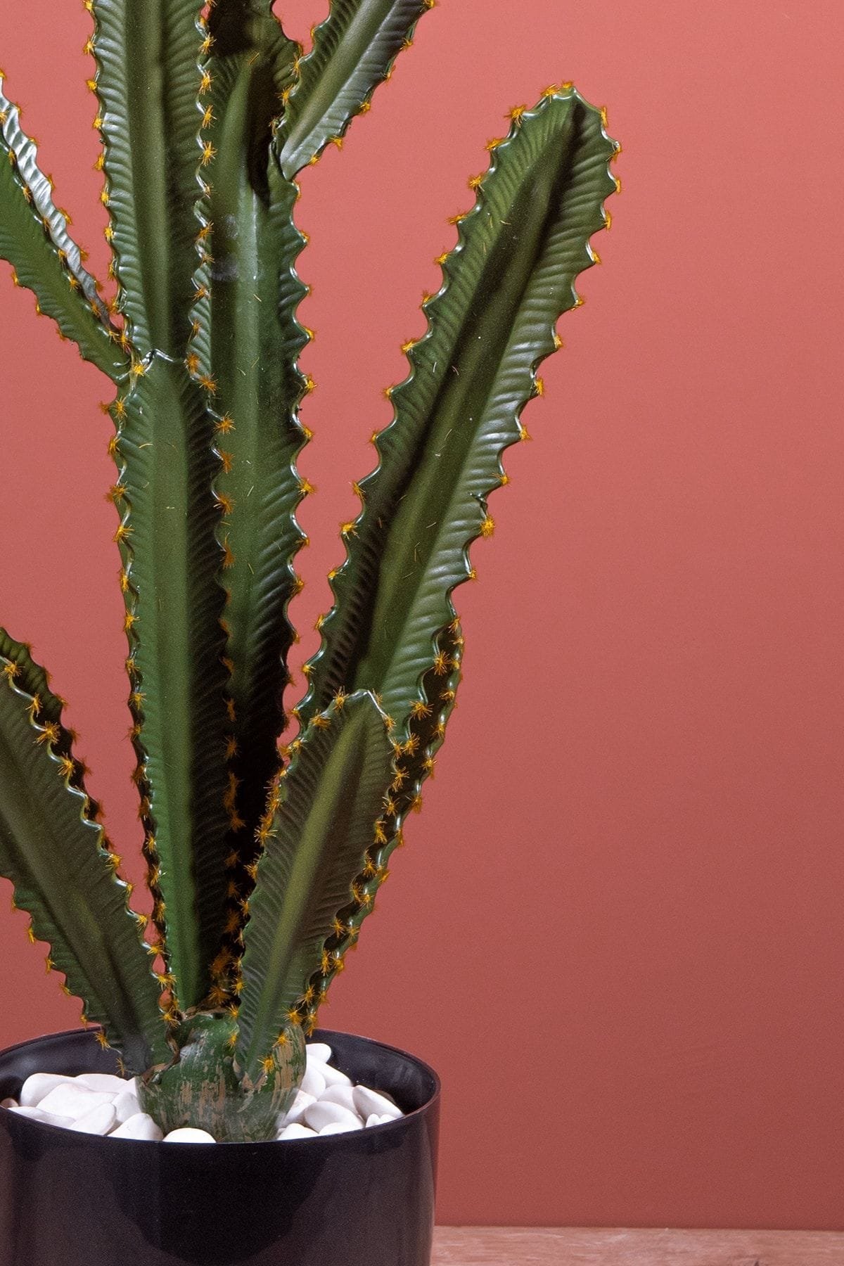 - Taş Kaplı Siyah Saksısında Yapay Texas Kaktüs