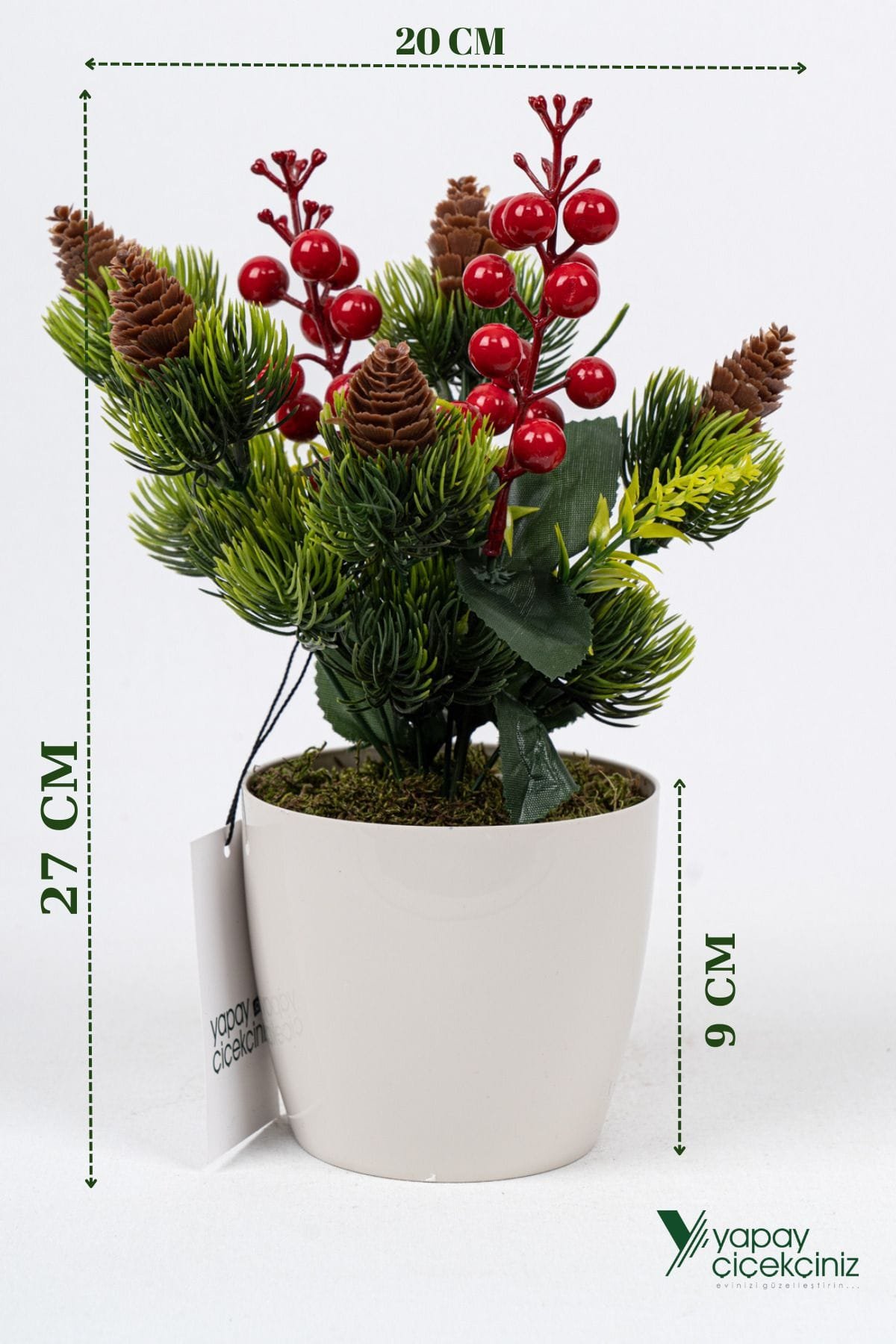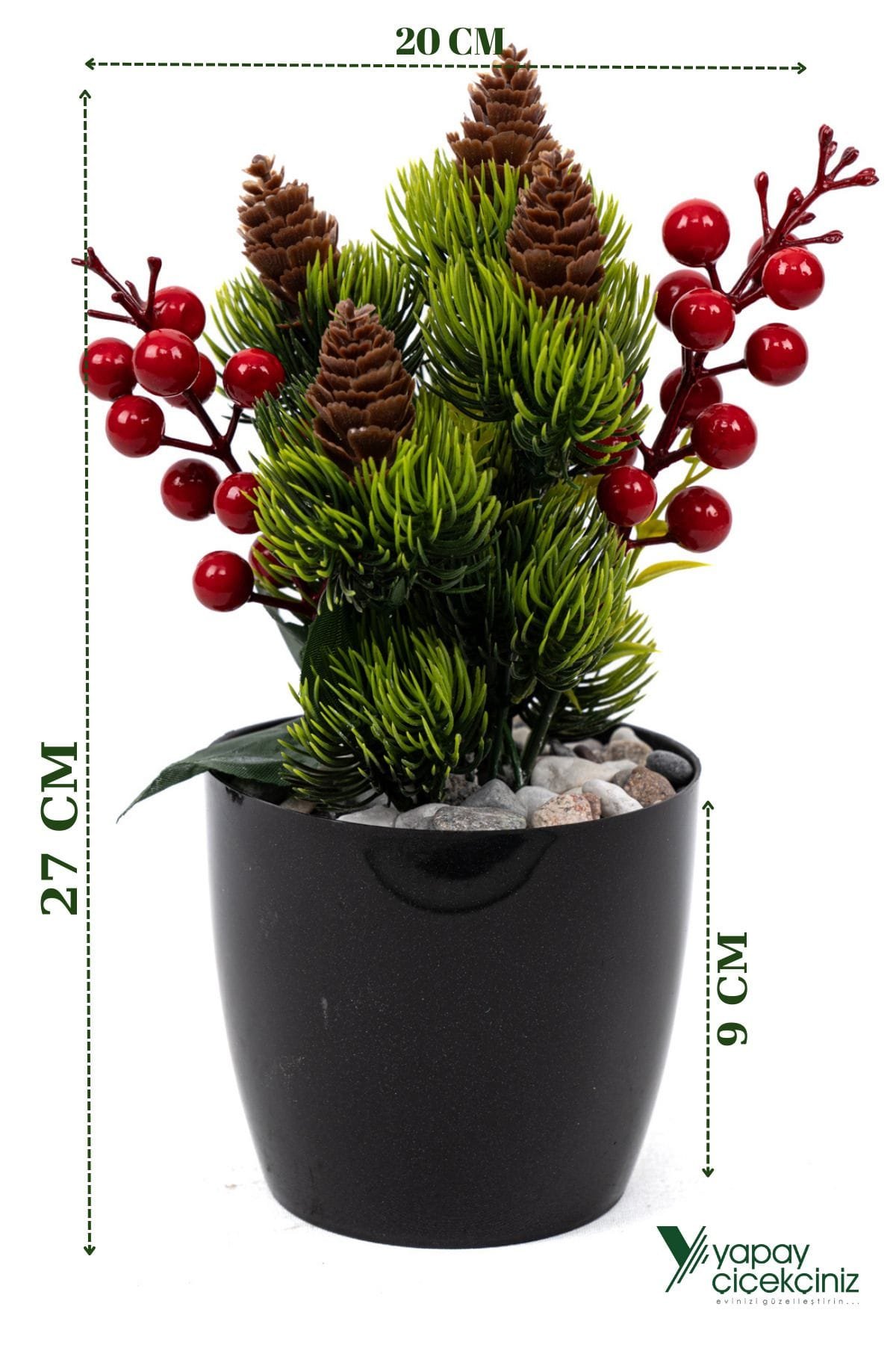 Yapay YILBAŞI çiçeği, yoğun yapraklar kullanılarak gerçeğe en yakın şekilde tasarlanmıştır. ; Gerçek çiçeklerin aksine sonsuza dek canlı ve yeşil rengini korumaktadır. ; Her hangi bir bakım gerektirmez. ; Yapay çiçeğiniz plastik saksı içerisine beton ile sabitlenmiş olup, çocuklarınız ve evcil hayvanlarınız temas ettiğinde hemen devrilme yapmaz. ; Tezgahlarınıza, Balkonunuza ve yaşam alanlarınıza renk katacaktır. ; Sevdiklerinize yılbaşı hediyesi olarak alabilrsiniz.;