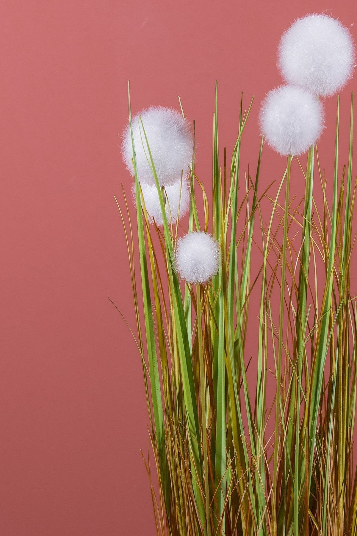 - Taş Detaylı Beyaz Saksıda 12 Yapraklı 50 cm Yapay Salon Çiçeği