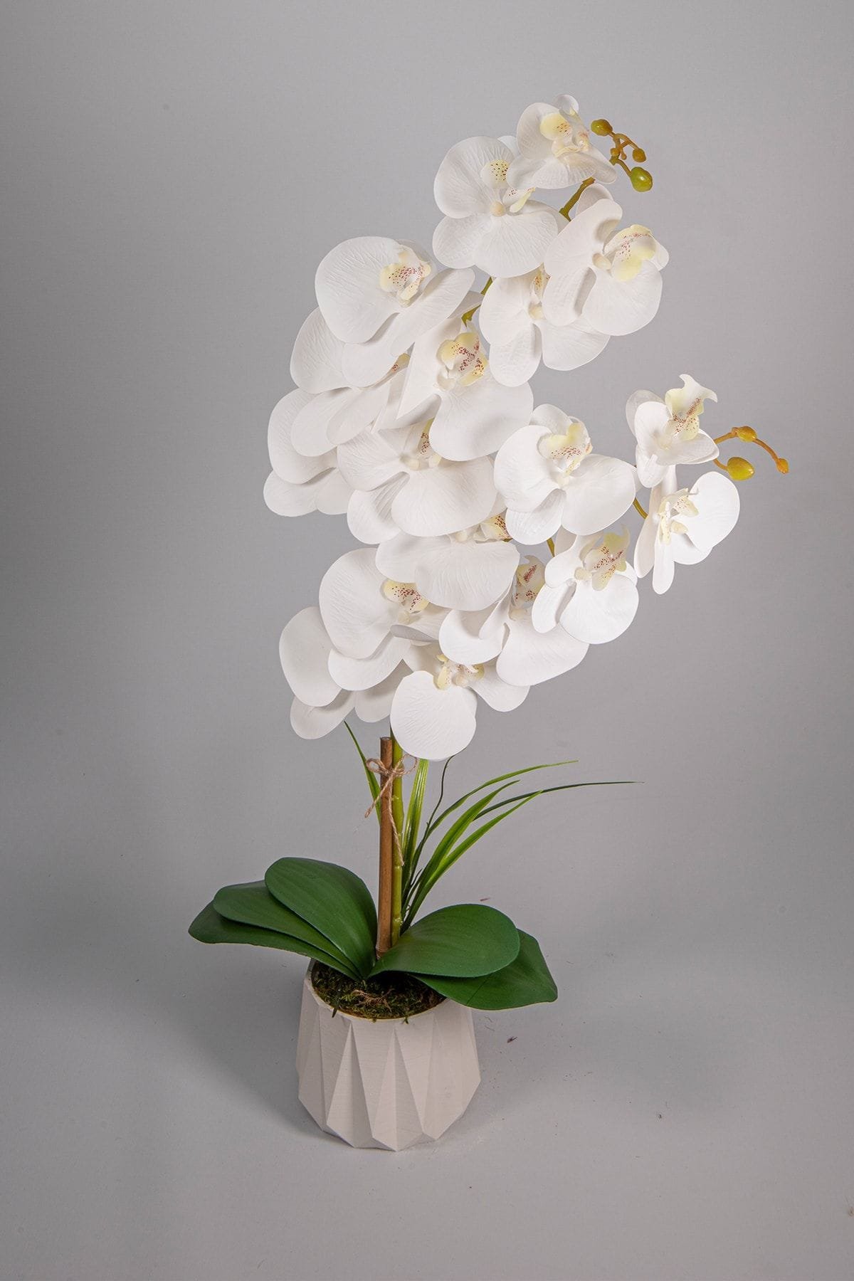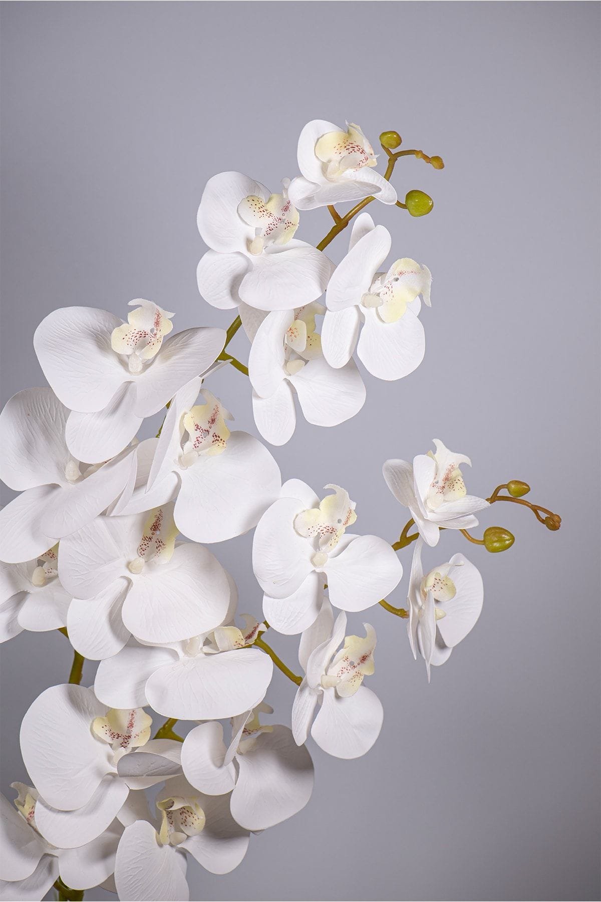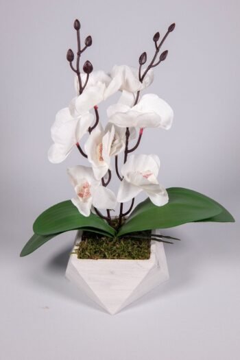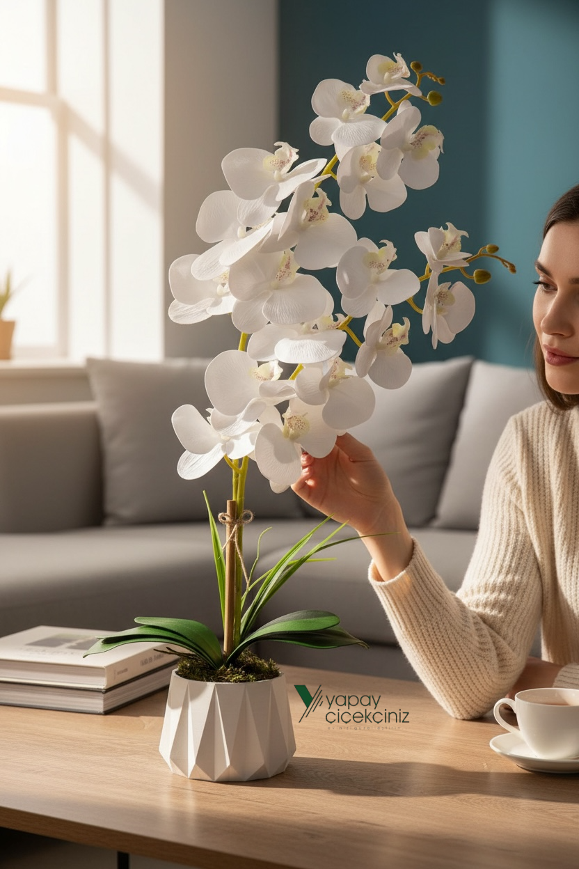 Beyazın zarafetini yansıtan orkidemiz, şık yaprakları ve tomurcuklarıyla bulunduğu ortama ferah ve estetik bir hava katar. Baharı müjdeleyen görünümüyle sevdiklerinize hem anlamlı hem de uzun ömürlü bir hediye alternatifi sunar. Dayanıklı yapısı sayesinde uzun süre formunu korur ve ev, ofis gibi tüm yaşam alanları için ideal bir dekorasyon ürünüdür.