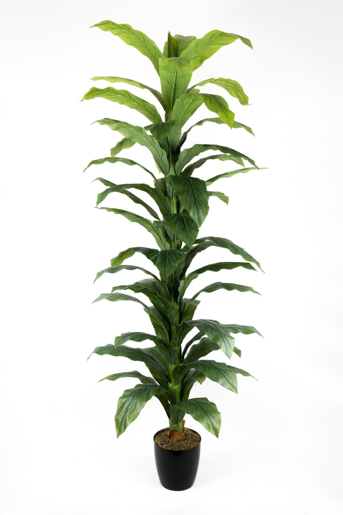Siyah Saksıda Çim Detaylı Büyük Yapraklı Yapay Difenbahya Ağacı 180 Cm