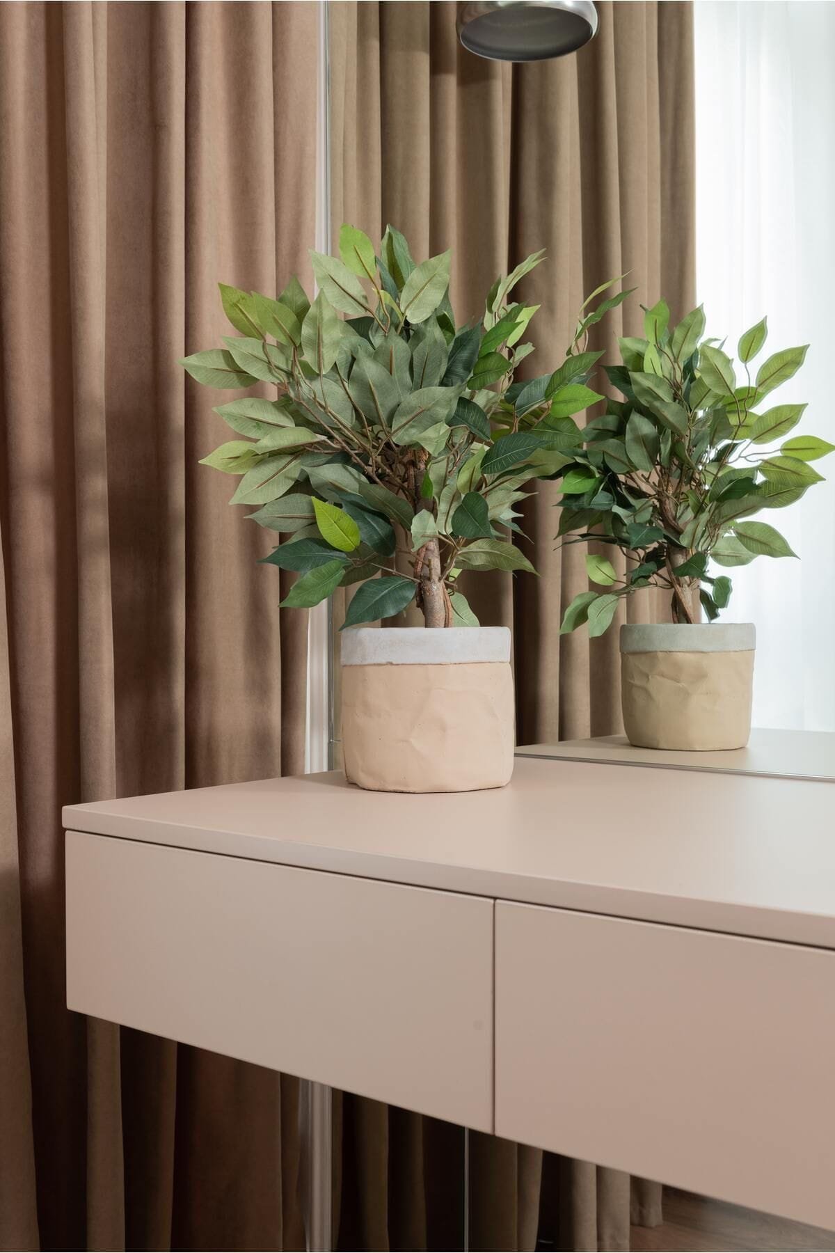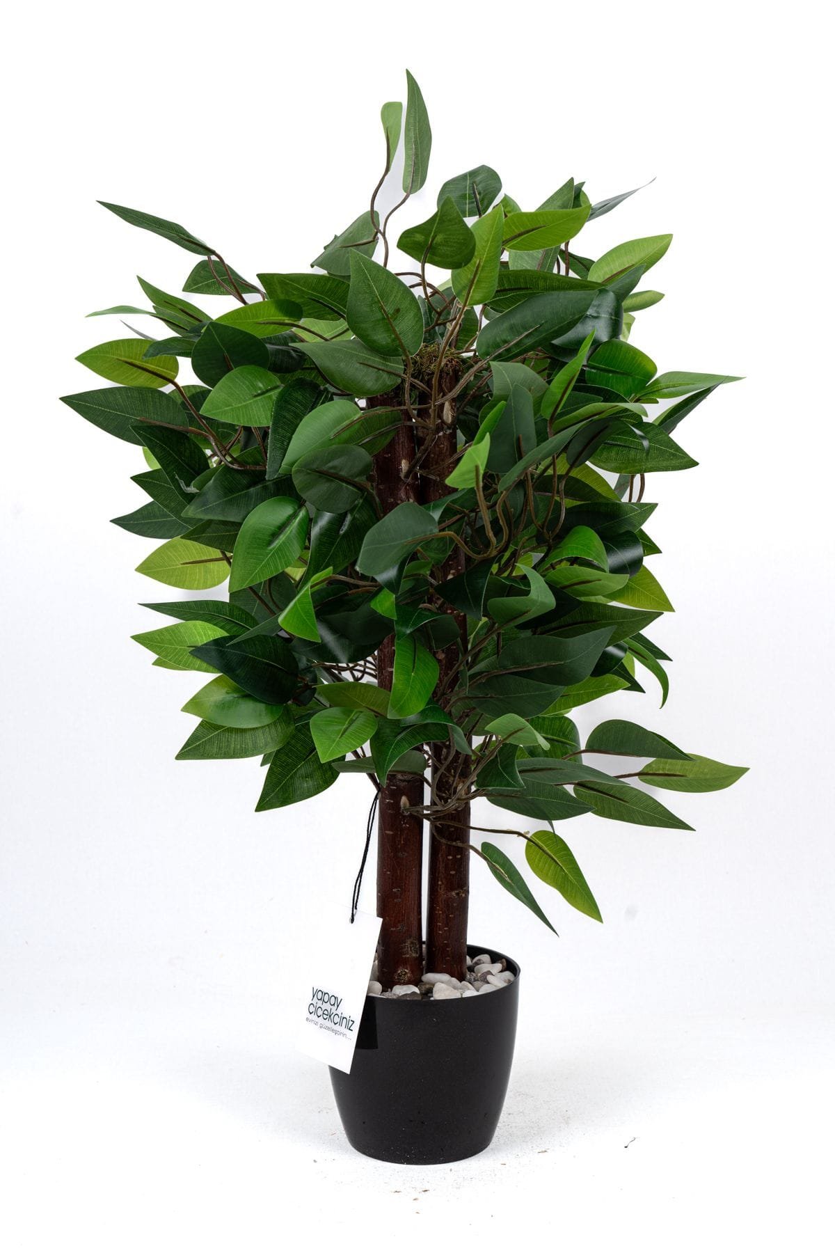 Taş Detaylı Siyah Saksıda 60 Cm Yoğun Yapraklı Yapay Benjamin Ağacı