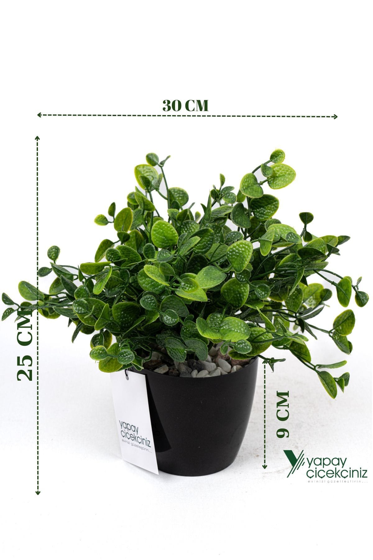- Taş Detaylı Siyah Saksıda Yoğun Yapraklı Yapay Dekor Yeşillik Demeti