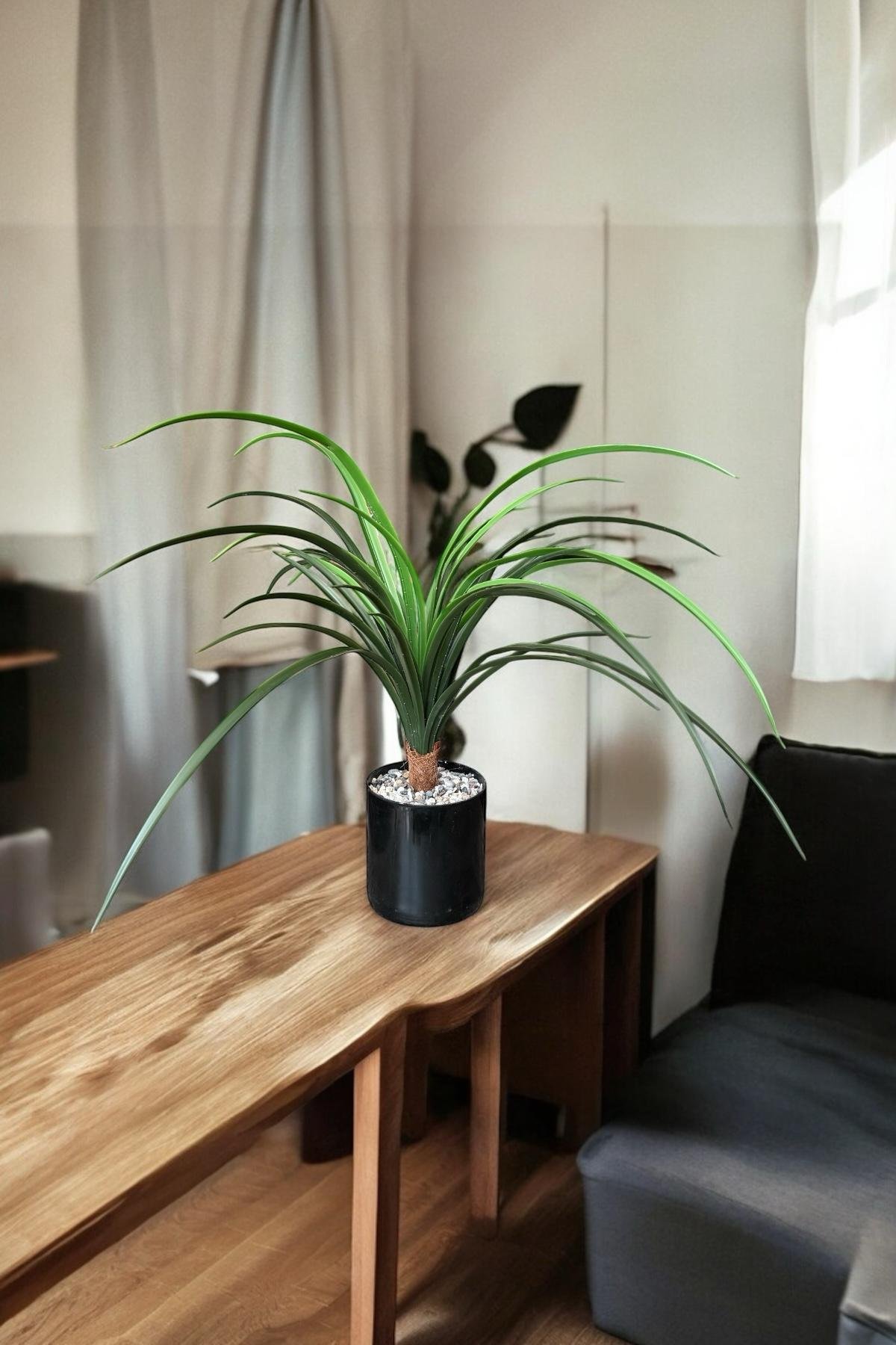 TAŞ KAPLI SİYAH RENKLİ SAKSIDA 55 CM YAPAY YUKA AĞACI