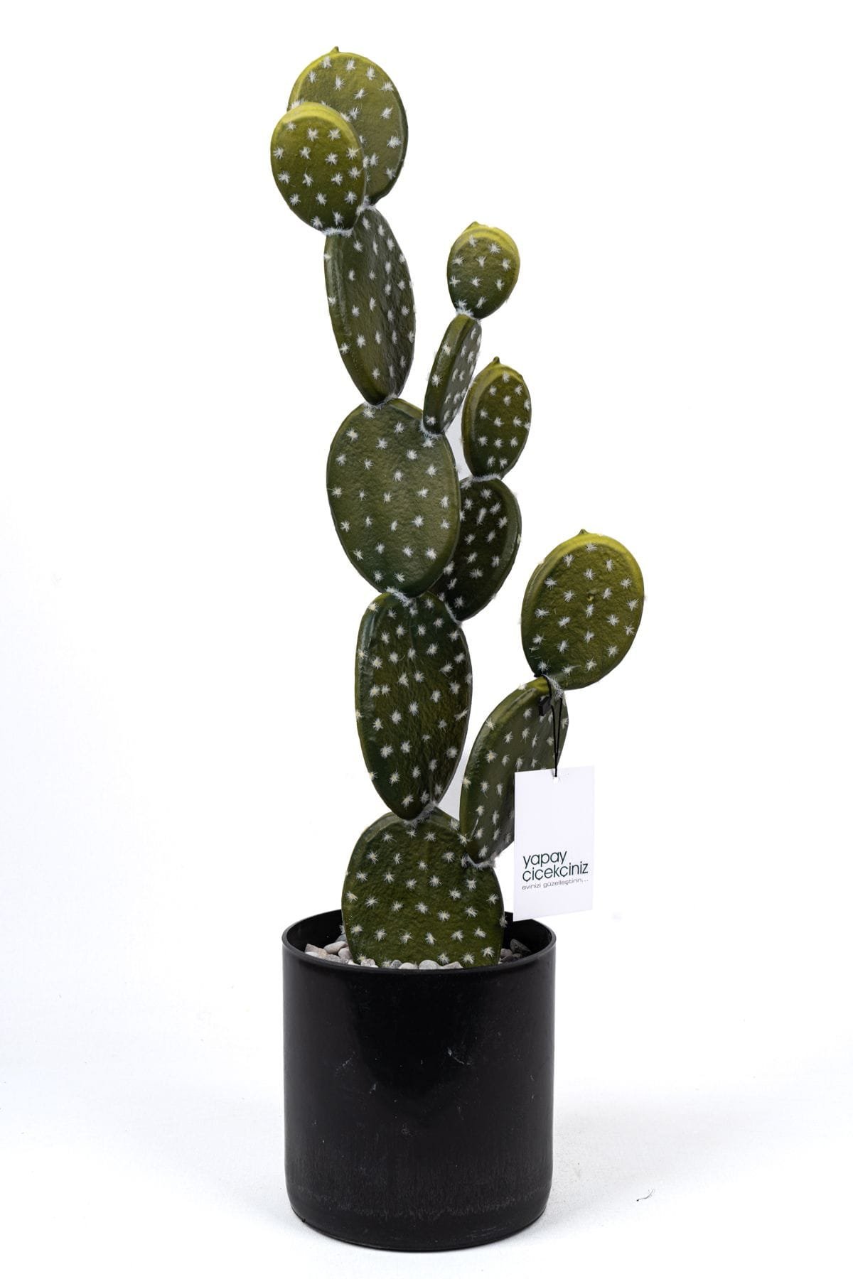Taş Kaplı Siyah Saksısında Yapay Texas Kaktüs