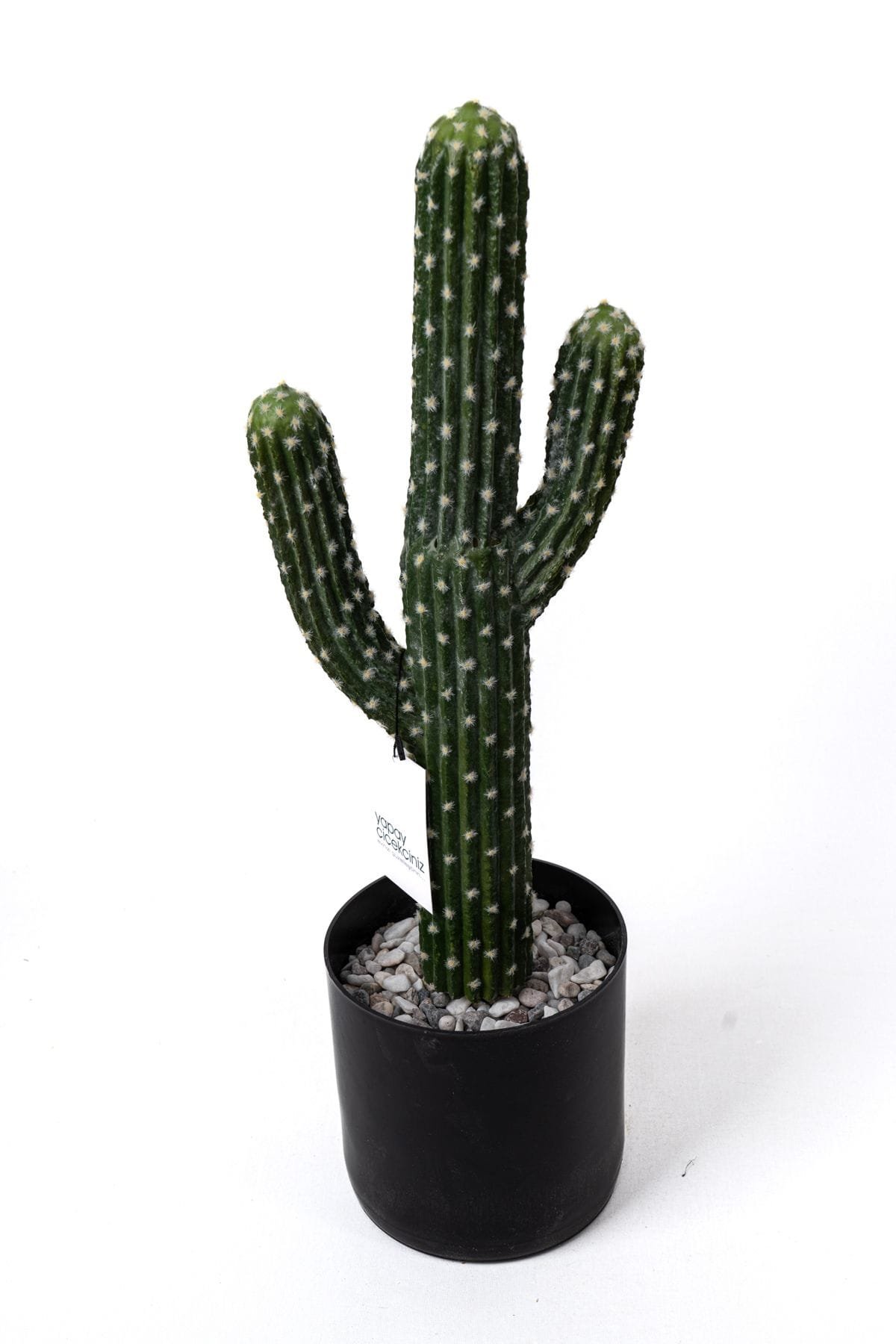 Taş Kaplı Siyah Saksısında Yapay Texas Kaktüs
