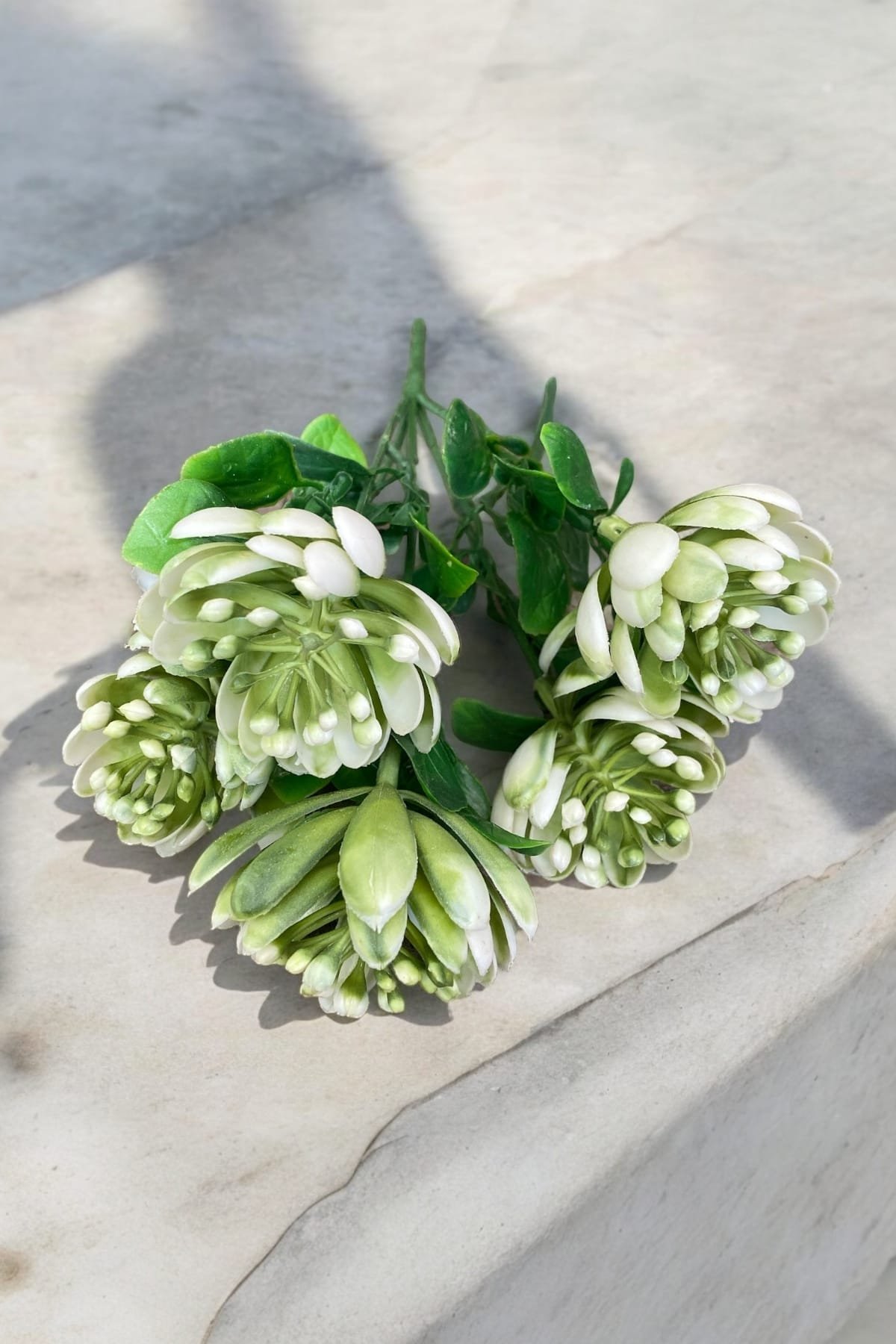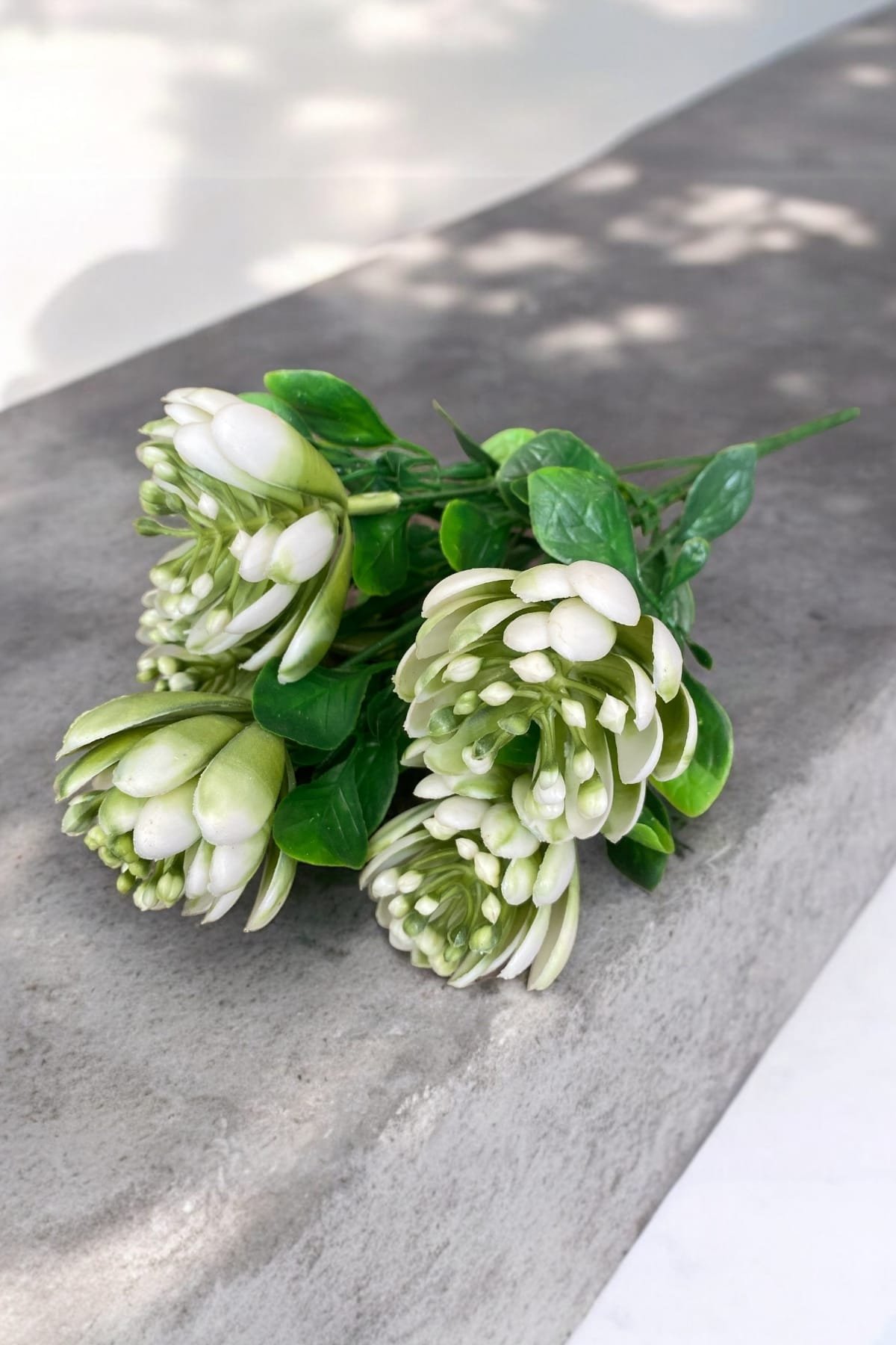 - Taş Detaylı Beyaz Saksıda 12 Yapraklı 50 cm Yapay Salon Çiçeği