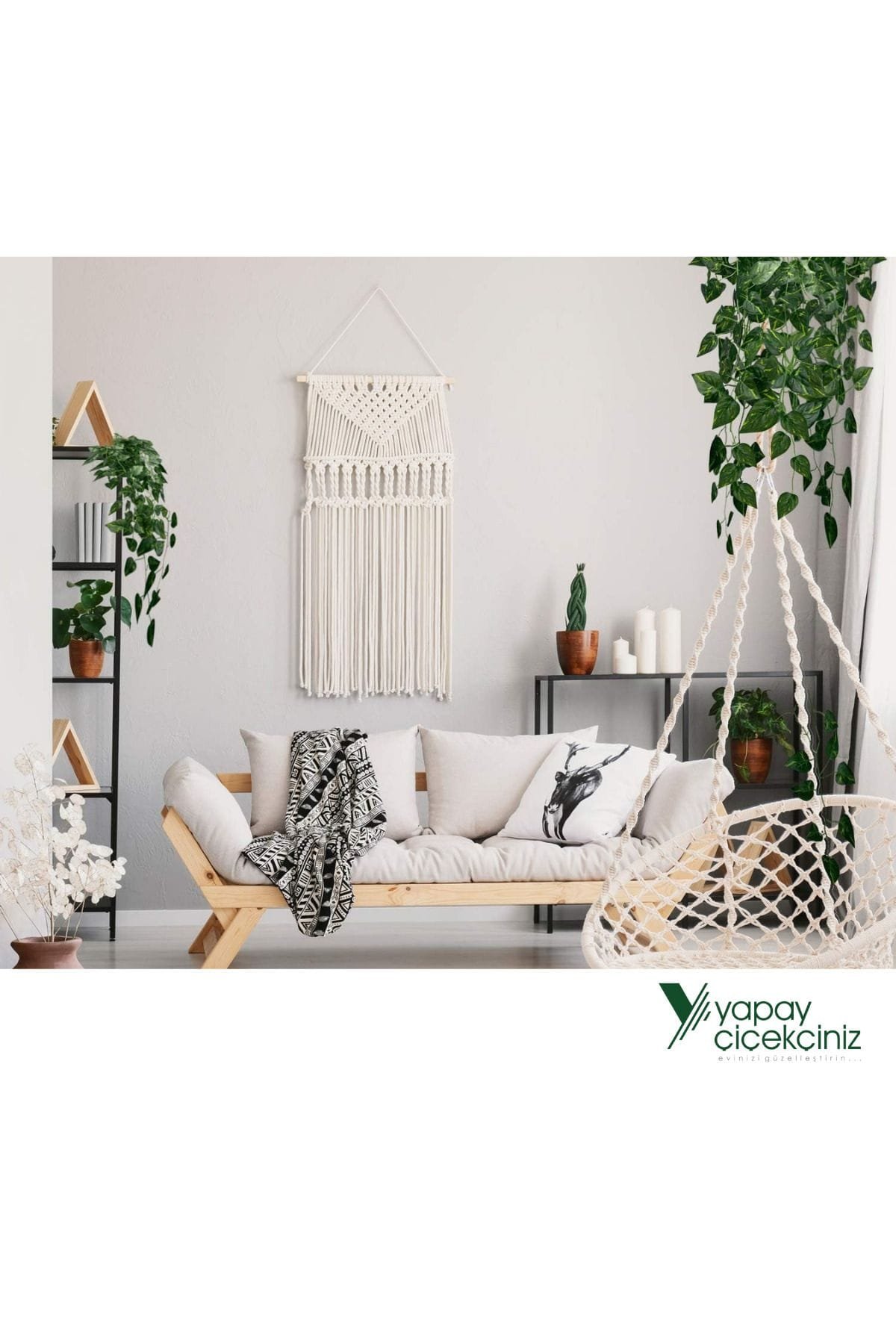 - Beyaz Plastik Saksıda Yoğun Yapraklı 90 Cm Yapay Sarkan Sarmaşık